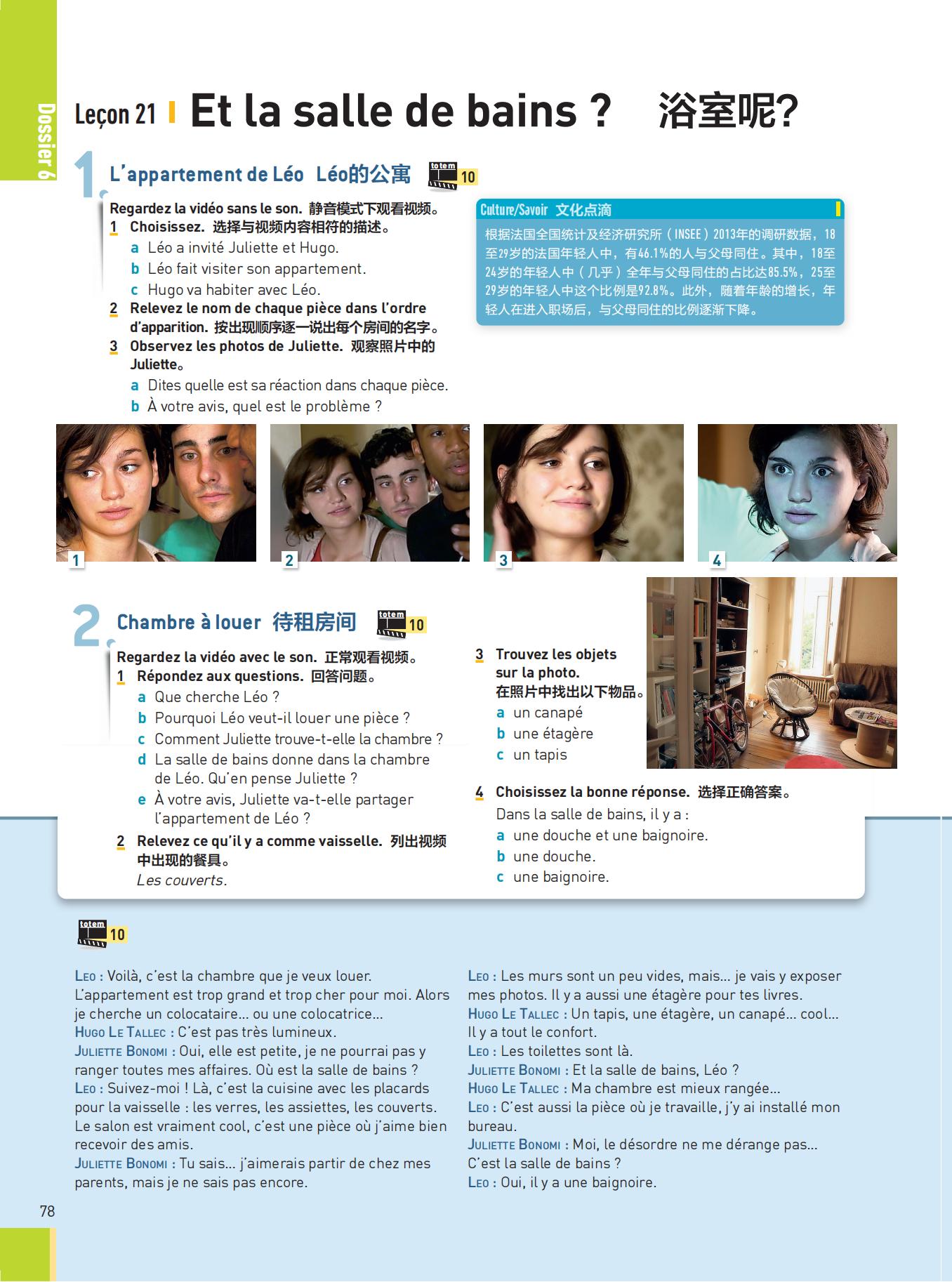 “totem大家的法语”提供全方位学习体验和学习资源:配有互动式电子教材的纸质版学生用书、全彩的练习册和同步学习手册、音视频资源、单元自测、学习情况自测表。
