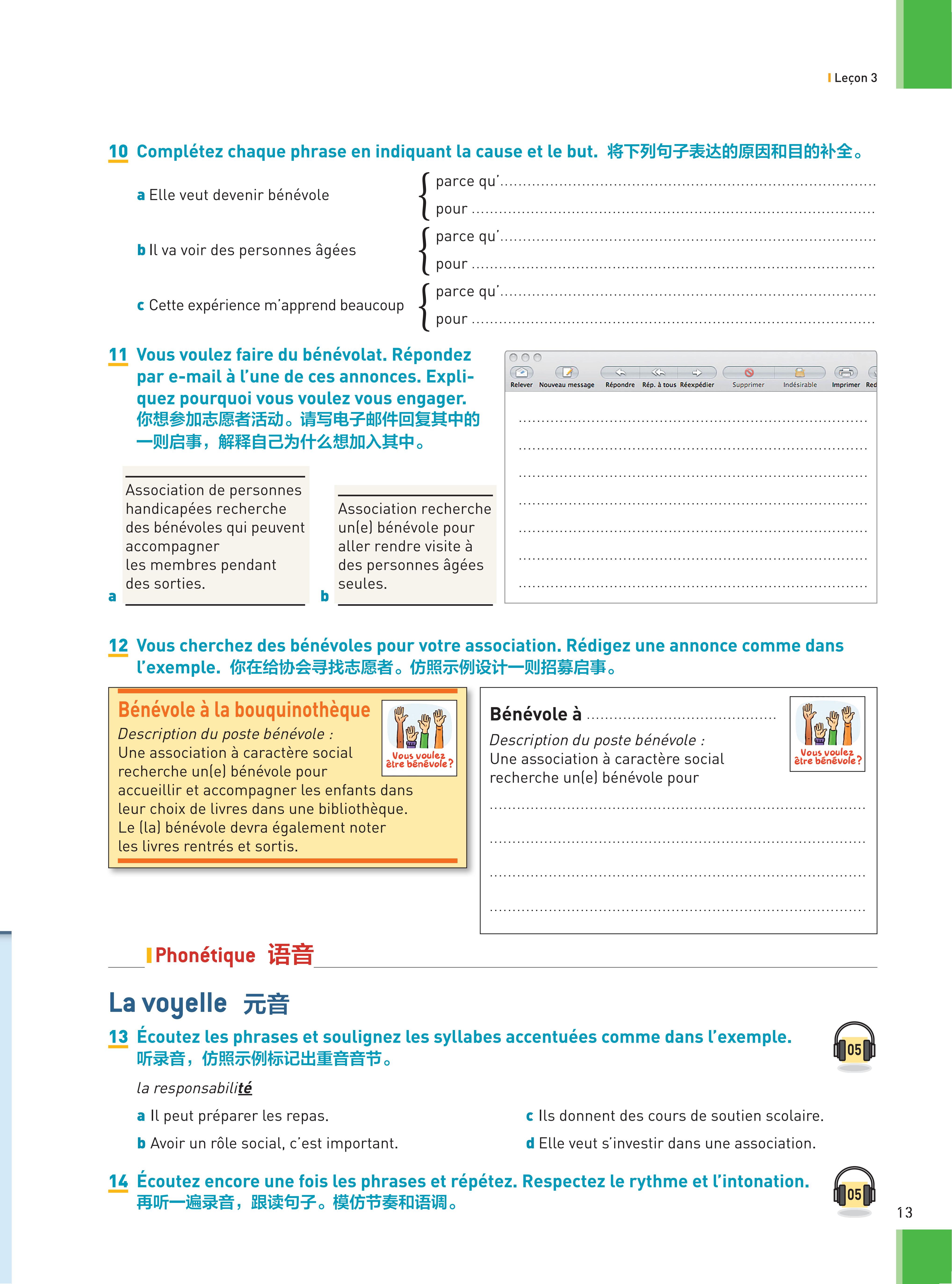 《totem大家的法语2练习册A2》为学生用书配套训练册,对应学生用书的学习进程和结构。练习册通过丰富多样的练习——听力理解和阅读理解练习、语法练习、词汇练习、语音练习、交际练习,巩固所学知试。每两个单元配有Faits et gestes/Culture单页;各单元末尾配有小结,全书最后配有对应级别的DELF考试。