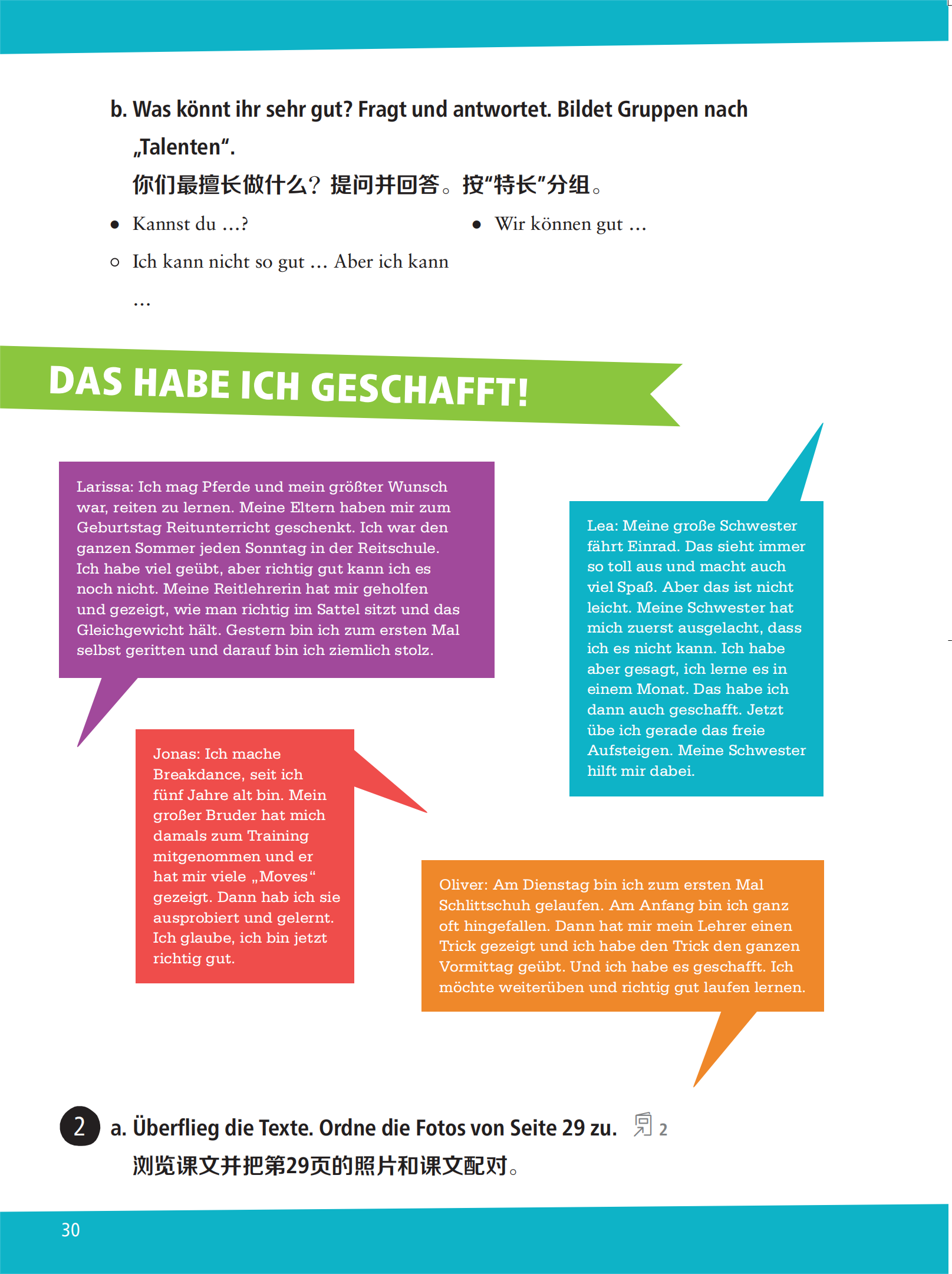 《少儿德语A2学生用书配单词图册》是一套专门为德语非母语(Deutsch als Fremdsprache)学习者编写的德语学习教程,由德国柯莱特教育出版社(Klett)出版发行。本套教程适用于零基础的少年儿童(6—12岁)在德语初级课堂使用。完整学完本套教程将达到“欧洲语言共同参考标准”A2水平。《少儿德语A2学生用书配单词图册》难度适中、趣味性强,图文丰富。为了提高少年儿童学习德语的兴趣,课文练习包含歌曲、游戏、课堂互动等多样形式。本书在强化语法学习及单词训练的同时,也配有相应短视频帮助学生更好地学习德语。每六个单元之后有测试单元,帮助学生巩固语言知识,查缺补漏。同时配有单词图册,帮助低龄德语初级学习者更好地掌握单词,学会使用单词进行造句。《少儿德语A2学生用书配单词图册》亦可作为歌德学院A2语言等级测试备考教材。