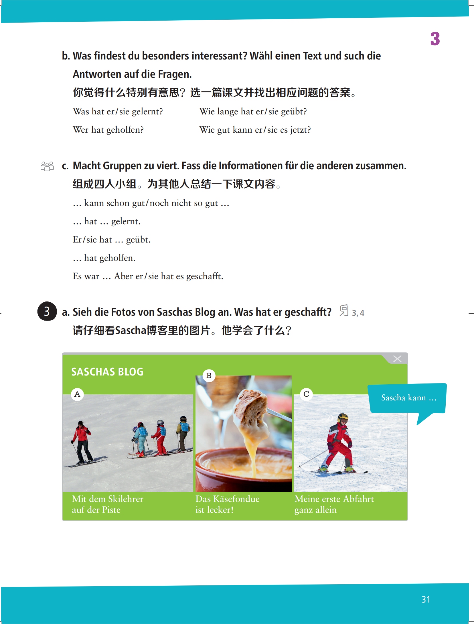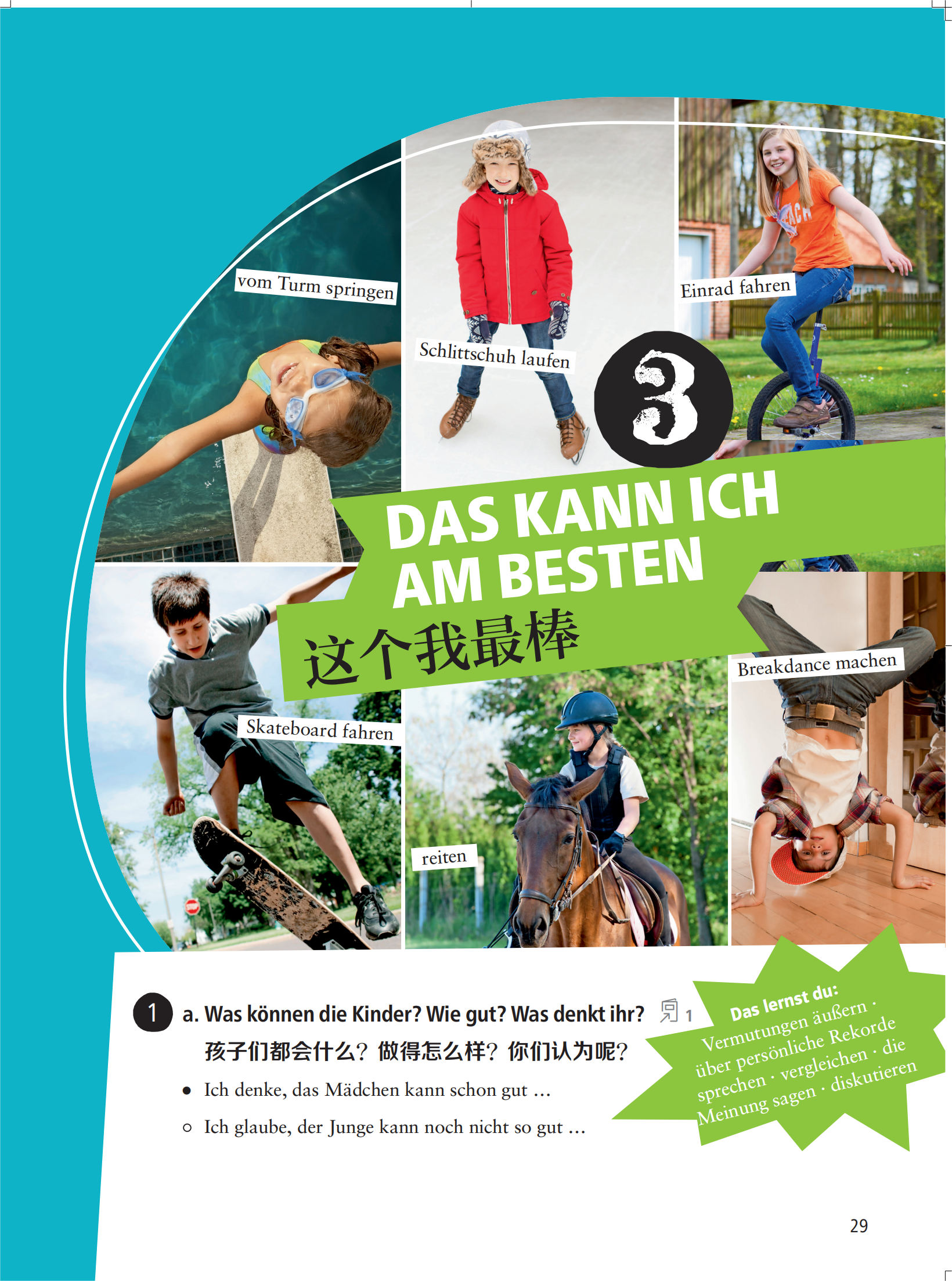 《少儿德语A2学生用书配单词图册》是一套专门为德语非母语(Deutsch als Fremdsprache)学习者编写的德语学习教程,由德国柯莱特教育出版社(Klett)出版发行。本套教程适用于零基础的少年儿童(6—12岁)在德语初级课堂使用。完整学完本套教程将达到“欧洲语言共同参考标准”A2水平。《少儿德语A2学生用书配单词图册》难度适中、趣味性强,图文丰富。为了提高少年儿童学习德语的兴趣,课文练习包含歌曲、游戏、课堂互动等多样形式。本书在强化语法学习及单词训练的同时,也配有相应短视频帮助学生更好地学习德语。每六个单元之后有测试单元,帮助学生巩固语言知识,查缺补漏。同时配有单词图册,帮助低龄德语初级学习者更好地掌握单词,学会使用单词进行造句。《少儿德语A2学生用书配单词图册》亦可作为歌德学院A2语言等级测试备考教材。