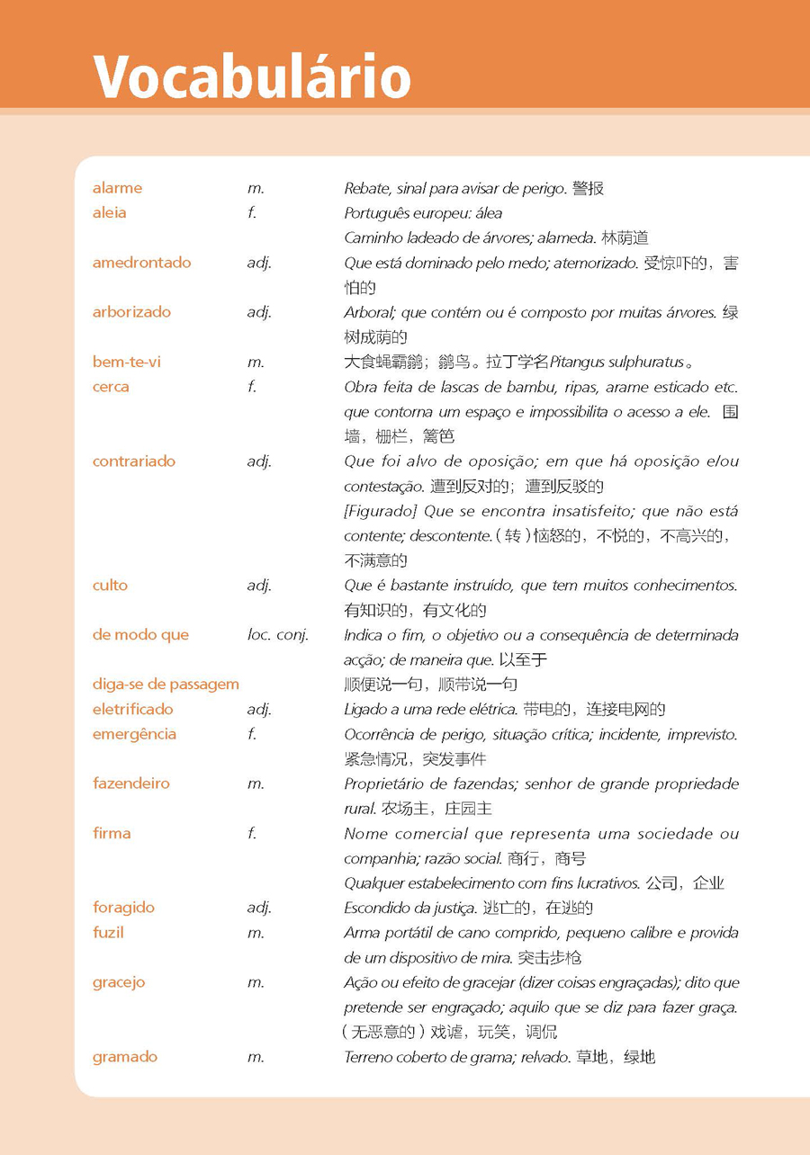 7. 词汇表采用中葡文双语解释,一方面可以帮助学习者更加准确地理解词义,另一方面也希望能帮助学习者学习、习惯使用葡语原文字典。