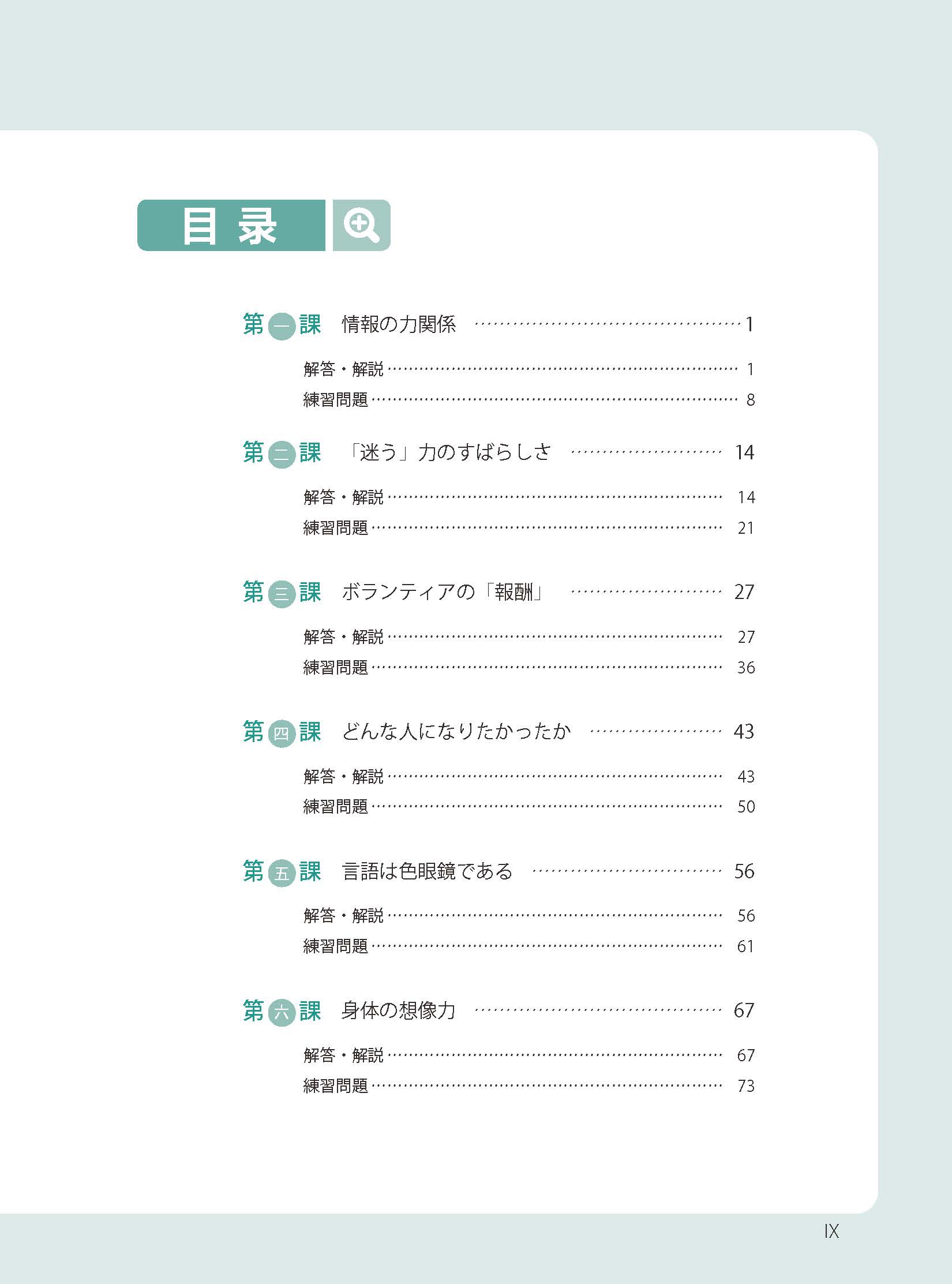 《新经典日本语高级教程第一册(第三版)精解与同步练习册》一书共10课,每课有两个板块。第一板块是关于课文中的问题和课后思考题的解答与解说,解说、解答部分不仅给出了问题的答案,更多的是引导学习者学会如何用日语去思考问题、解读文章。第二板块中共七道题,其中一到三题为词汇练习,第四题为综合选择题,第五题为翻译练习,所选取的句子均来自于课文,基本上都是句式较复杂、内容较重要的句子。第六题和第七题是阅读练习。