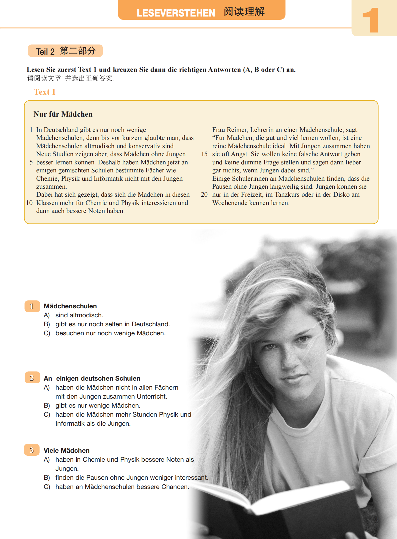Deutsch"所出的测试类图书。包括难度等级递增的三个单元,共15套测试练习,第三单元达到"Zertifikat