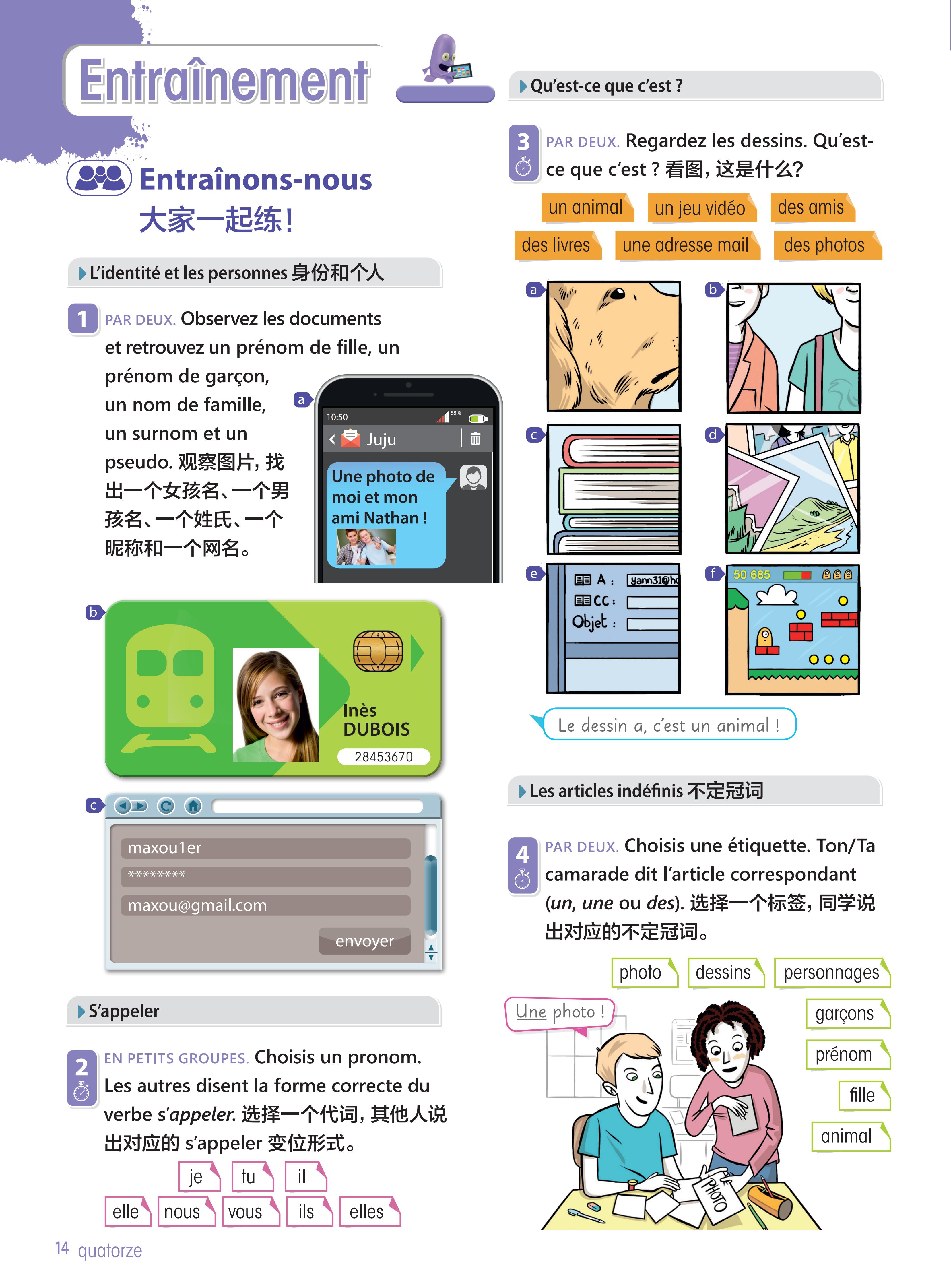 《adomania中学生法语1学生用书A1》包含1个导入单元、8个学习单元、4套DELF A1模拟题和附录。学习单元结构为3+1+1,即3个学习课加1个拓展课加1个自测与训练,通过各种介质形式的语料——文本、图片、音频、视频,呈现中学生的世界,语法、词汇、表达方式、语音等语言信息学习融入其中,强调语言学习的交际互动。附录包含图解词典、实用主题交际句型、语法概要、动词表位表、生词表。