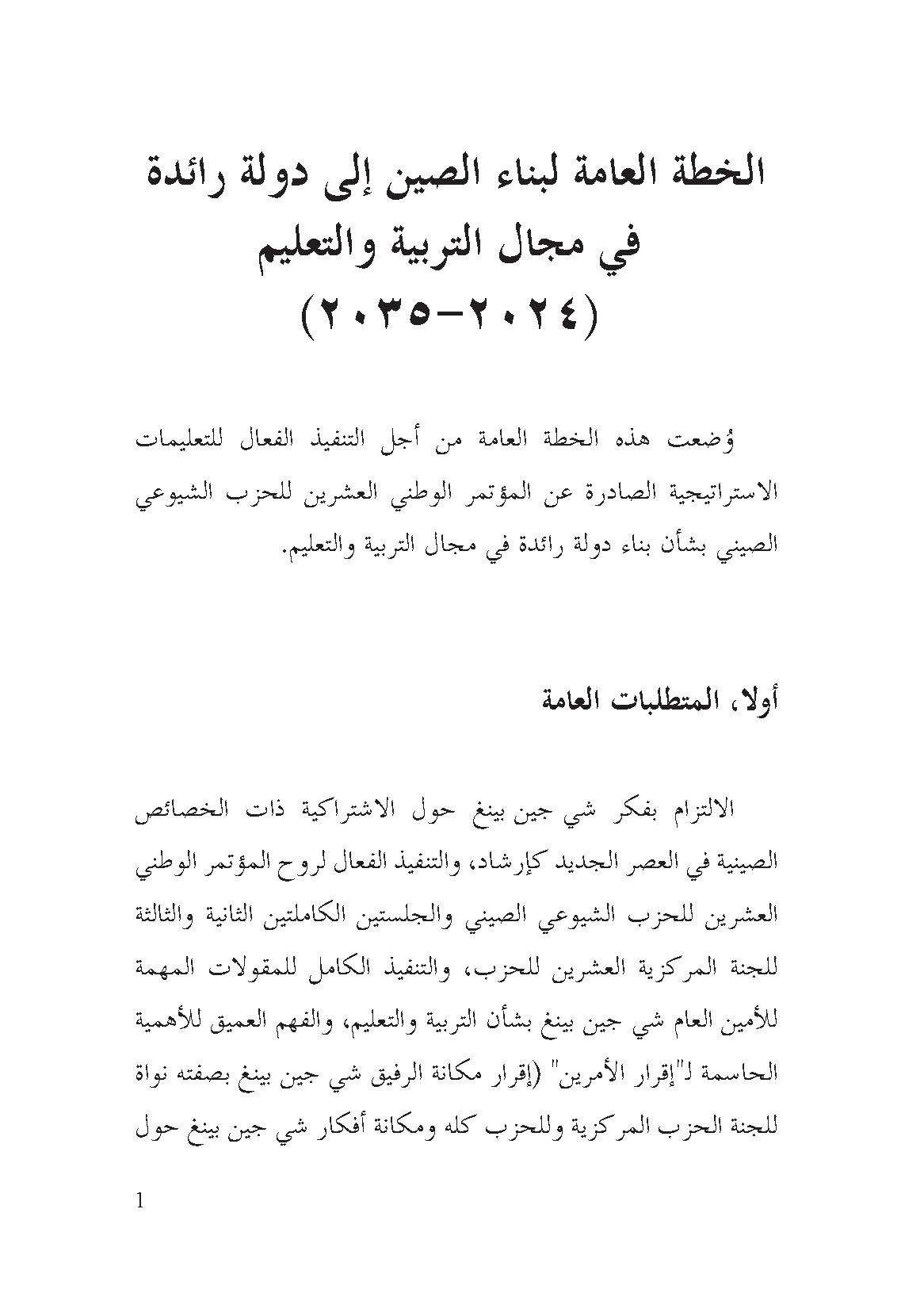 教育强国建设规划纲要(2024-2035年)(阿拉伯文版)