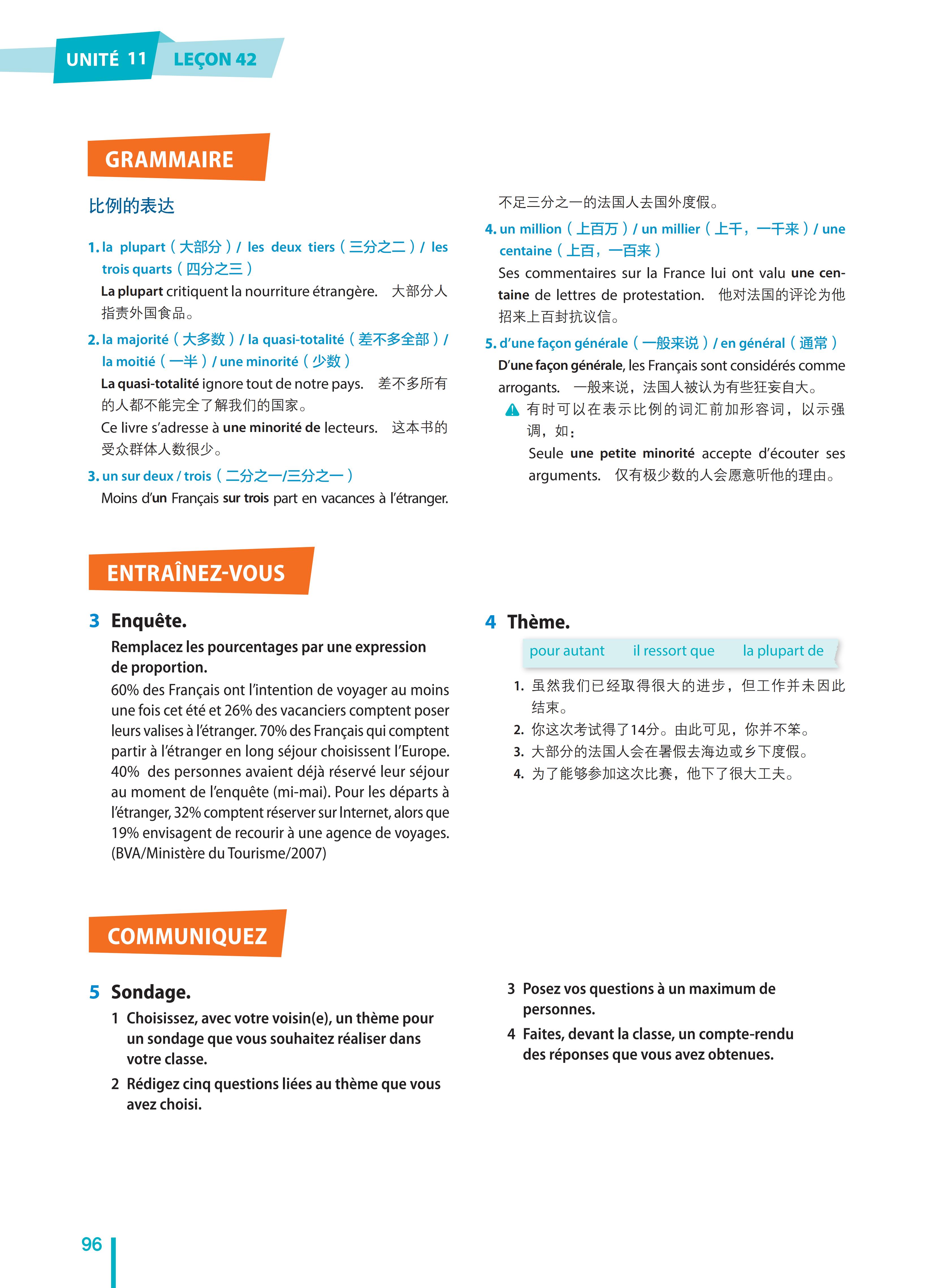 ·语法讲解充分考虑大学法语四级、考研二外法语、TCF/TEF/DELF等各类考试的需求,按照中国学习者的接受习惯进行总结梳理,突出和归纳书面表达在语法层面的特点和难点;