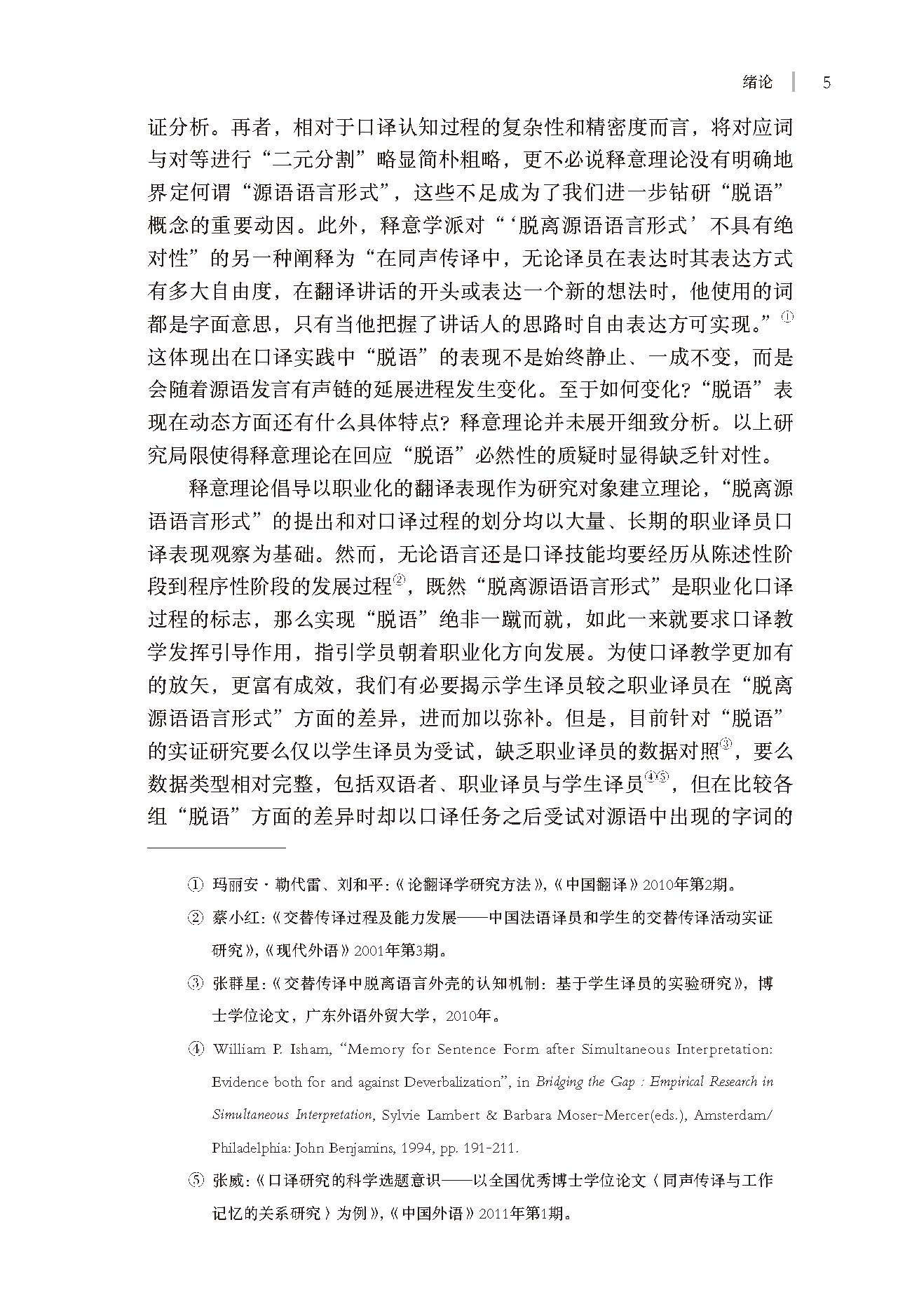 1. 从冷门中创新,夯实译学研究基础。成果在理论思辨和实证研究维度拓展与充实了释意理论对“脱离源语语言形式”的考察,提出了“脱离源语语言形式”的程度之说,从源头上推进口译研究的纵深发展,充分体现了基础研究的探索性与创新性。