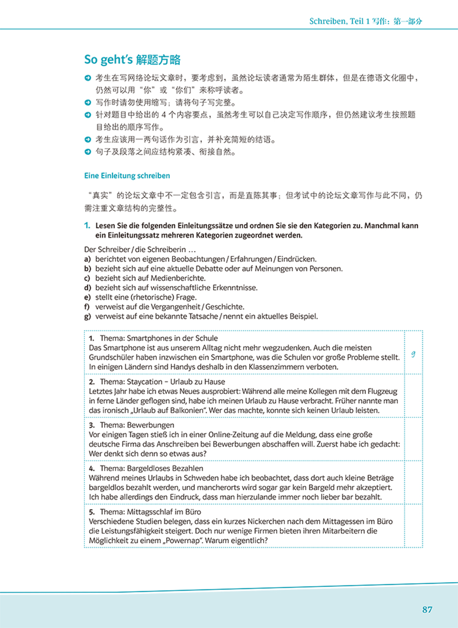 3. 单独设置“词汇”和“语法”单元,该部分提炼了备考德语B2考试所必备的词汇及语法知识,并辅以形式多样的训练题。