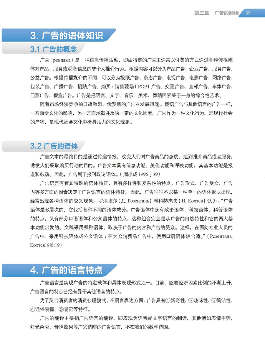 创新性:传统理论和创新理念相结合,在传统的俄语翻译理论与技巧基础上,分析经贸领域中各种文本类型内容新颖的实例语料的结构与特点,探讨不同语篇单位的翻译,总结经贸文本翻译的实践技巧;