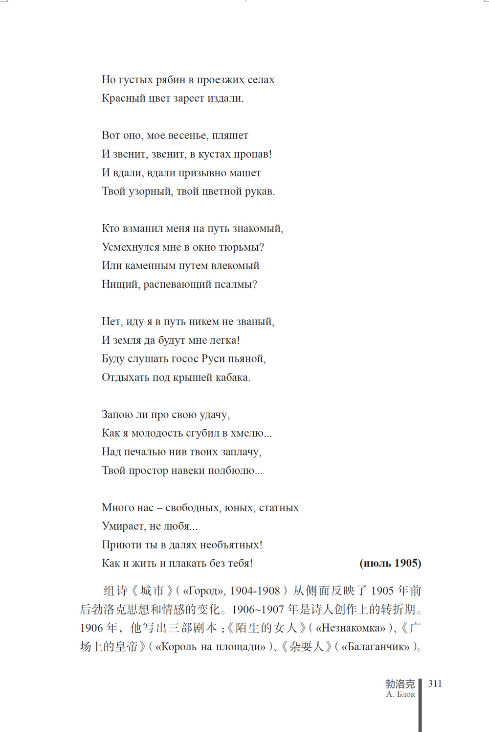 《俄罗斯诗歌太阳与白夜(下):从普希金到阿赫玛托娃》是学习和了解俄罗斯诗歌的阅读课本。收录叶赛宁、索洛古勃、马雅可夫斯基、沃罗申、别雷、谢维里亚宁、茨维塔耶娃、巴尔蒙特、列别杰夫-库奇马、帕斯捷尔纳克、阿谢耶夫、阿赫玛托娃12位诗人的作品,系统介绍了个位诗人的创作历程和创作特点、对俄罗斯诗歌史的贡献和代表作。
