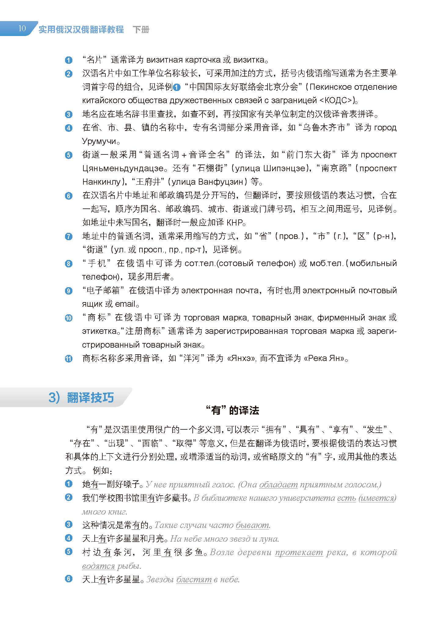 《实用俄汉汉俄翻译教程下册第3版》为高等院校俄语专业翻译课程教材,也可作为俄语专科班及培训班的翻译教材,适用于广大从事外事、经贸、导游等工作的俄语翻译工作者。下册按照语体分成37个专题单元。每个单元包括分析译例、译法提示、翻译技巧和翻译练习四个部分。第3版中不仅增添了新的语料,而且还修正了原教材中表达不准确的地方,使教材的内容更加符合教与学的需要。教材突出了翻译实践性,把翻译的基本理论贯穿在概论等部分,尽量做到以理论指导实践,以实践提升理论。