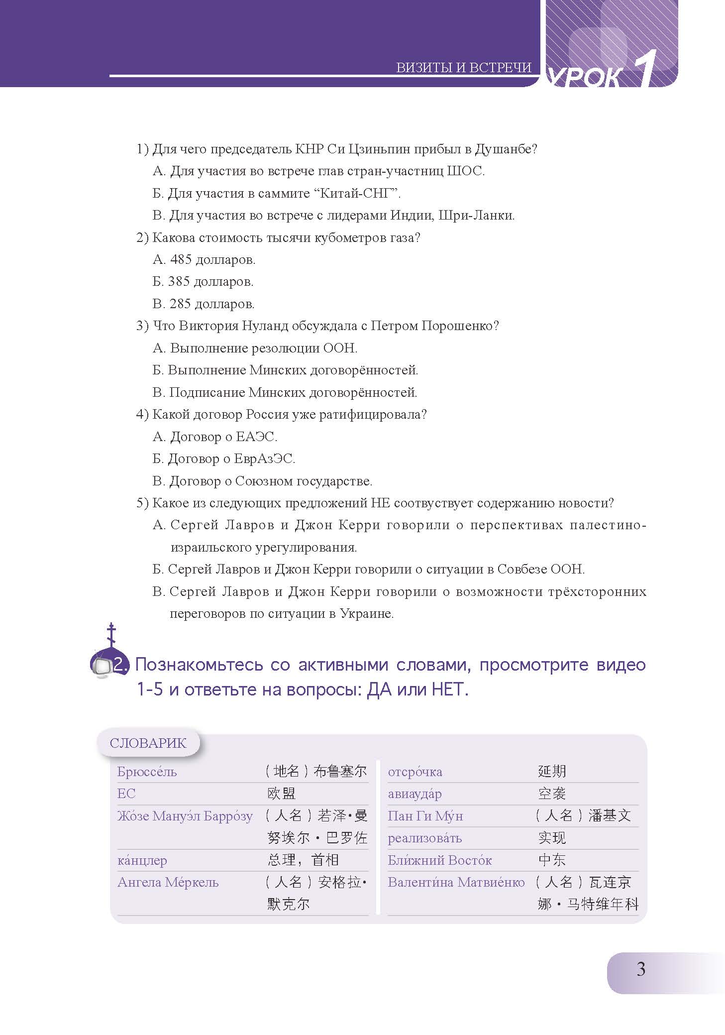 《俄语高级视听说教程学生用书》教材中的选材标准是以新闻报道为主,同时结合采访讲话和专题片,主题涉及访问会见、国际时事、国内政治、安全军事、事故灾害、经济科技、社会文化等,主题设计既参考俄罗斯新闻报道的主流分类体系,又考虑到实际的教学需要。新闻内容既触及俄罗斯国内生活的方方面面,又涵盖国际热点,同时又单列出了中国专题。所收新闻素材权威性强,取自于俄罗斯和中国重要的电视媒体,语言规范,语汇丰富,共约450个音视频素材,语料丰富,练习形式多样,循序渐进,同时还提供了素材的慢速听力材料。