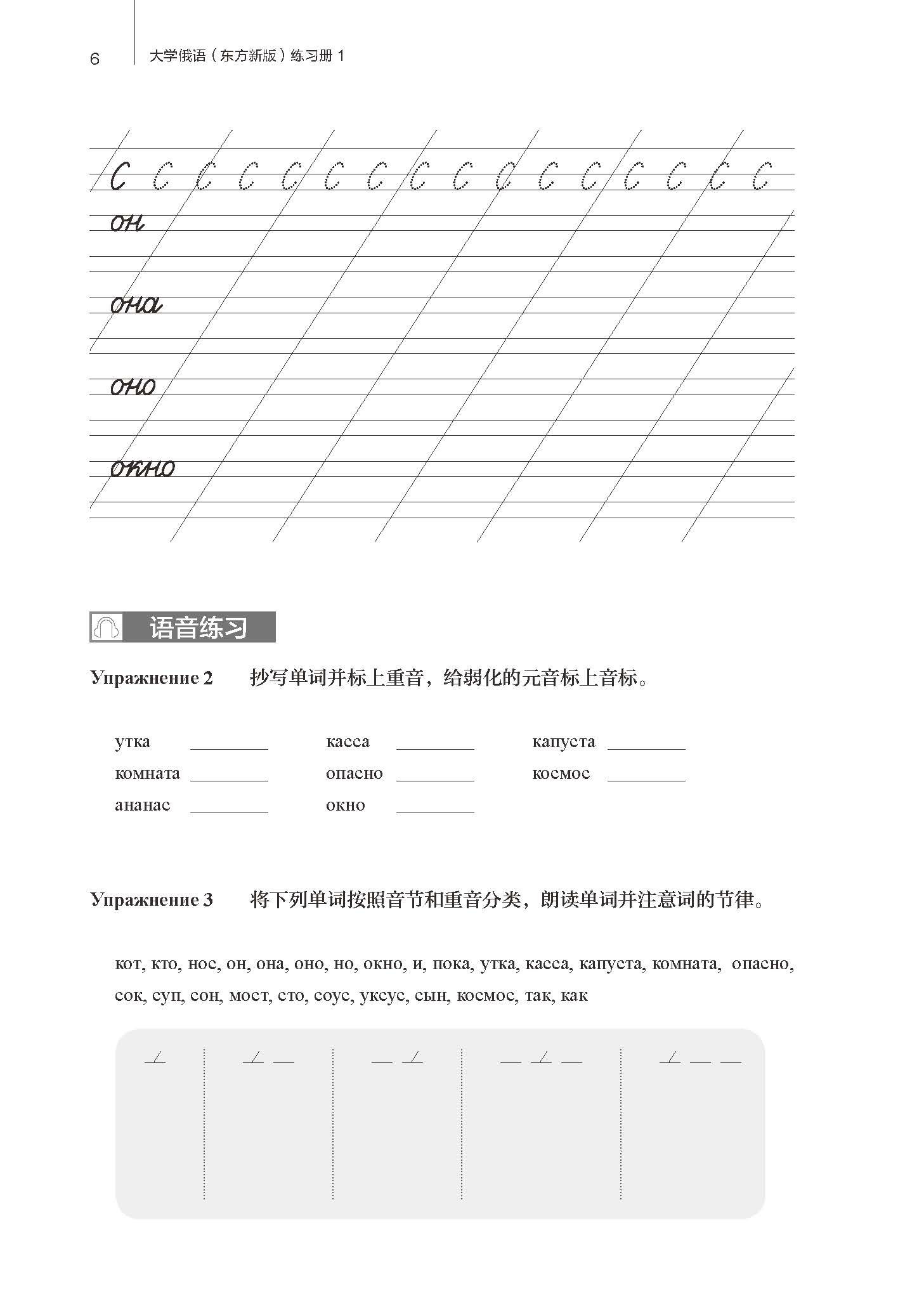 《大学俄语(东方新版)练习册1》是《大学俄语(东方新版)学生用书1》的配套练习册,由教学经验丰富的一线骨干教师编写供选用该教材的学习者使用。第一课至第九课的内容分为书写练习、语音练习、语言练习和言语练习,第九课至第十八课的内容分为书写练习、语言练习和言语练习。练习形式多样,内容全面,为课堂教学提供了丰富的素材,能够充分激发学习者积极性,培养学习者的基本技能和综合技能。