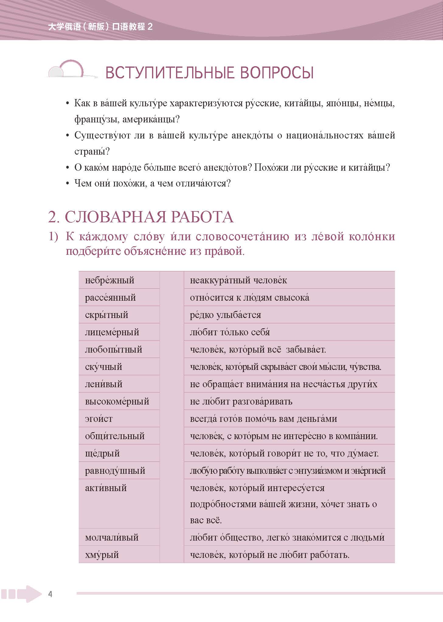 《东方大学俄语(新版)口语教程2》是与《“东方”大学俄语(新版)学生用书4》配套的口语教材,供高等学校俄语专业第四学期口语课教学使用。本教程以发展口语为目标,重视学生理解、运用和拓展等能力的发展,充分关注学生已有的经验和能力、兴趣和动机,注意调动学生的能动性。教程中的12个交际话题与精度教材完全契合,与此同时,它又有自己独立、完整的学习任务和练习体系。