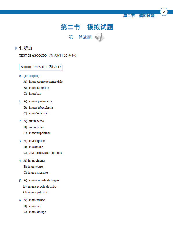 《意大利语A2考前冲刺模拟试题》由意大利资深外教根据历年真题的标准编写。