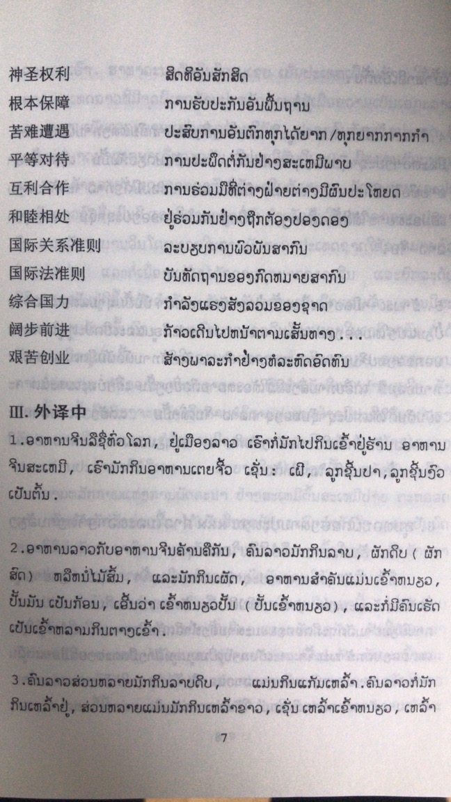 《老挝语翻译教程》是为大专院校老挝语专业高年级学生编写的教材,共设六单元十九课,内容涉及旅游、政治、经济、工业、金融、外贸、教育、科技、文化、卫生、外交、国际问题、法律以及环境保护等方面。大部分素材选自编著者翻译实践所集的材料,一部分选自中外有影响的报刊,还有一部分是中国国际电台老挝语组对外广播稿。除了最后两课外,每课编排有中译外、外译中、词汇(带*号的为补充词汇)以及翻译点评。其中,翻译点评是编著者翻译实践以及多年教学的心得体会,也是针对译员容易出错的地方进行点拔。为了便于读者自学,中译外部分大多数在书的后面附有译文供参考。另外还附有国际以及常见的东南亚组织机构的缩写对照表,便于译员查阅。