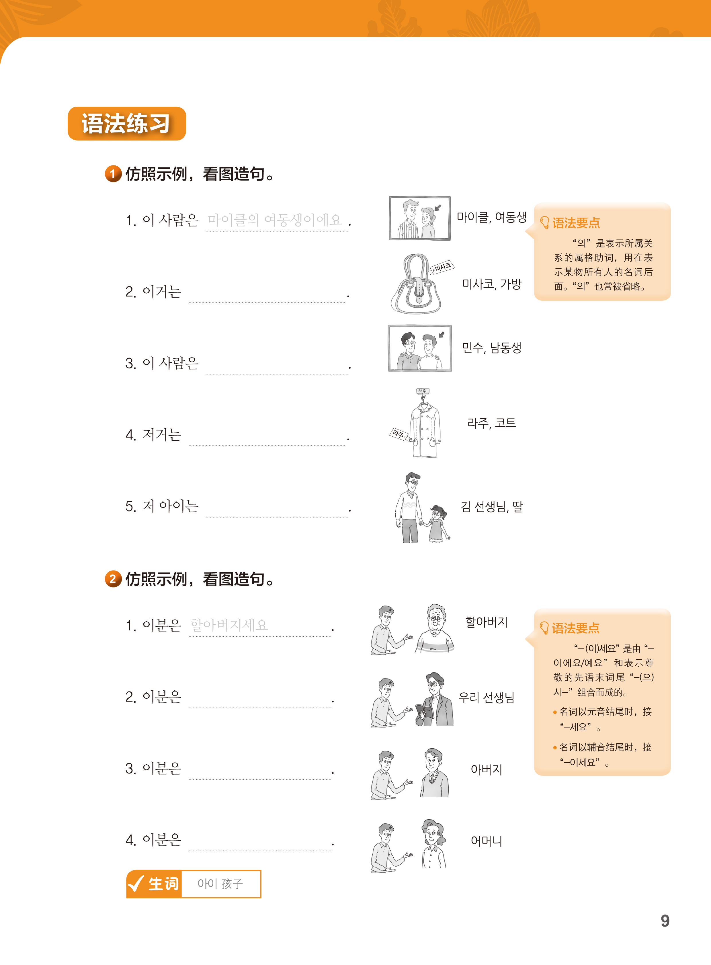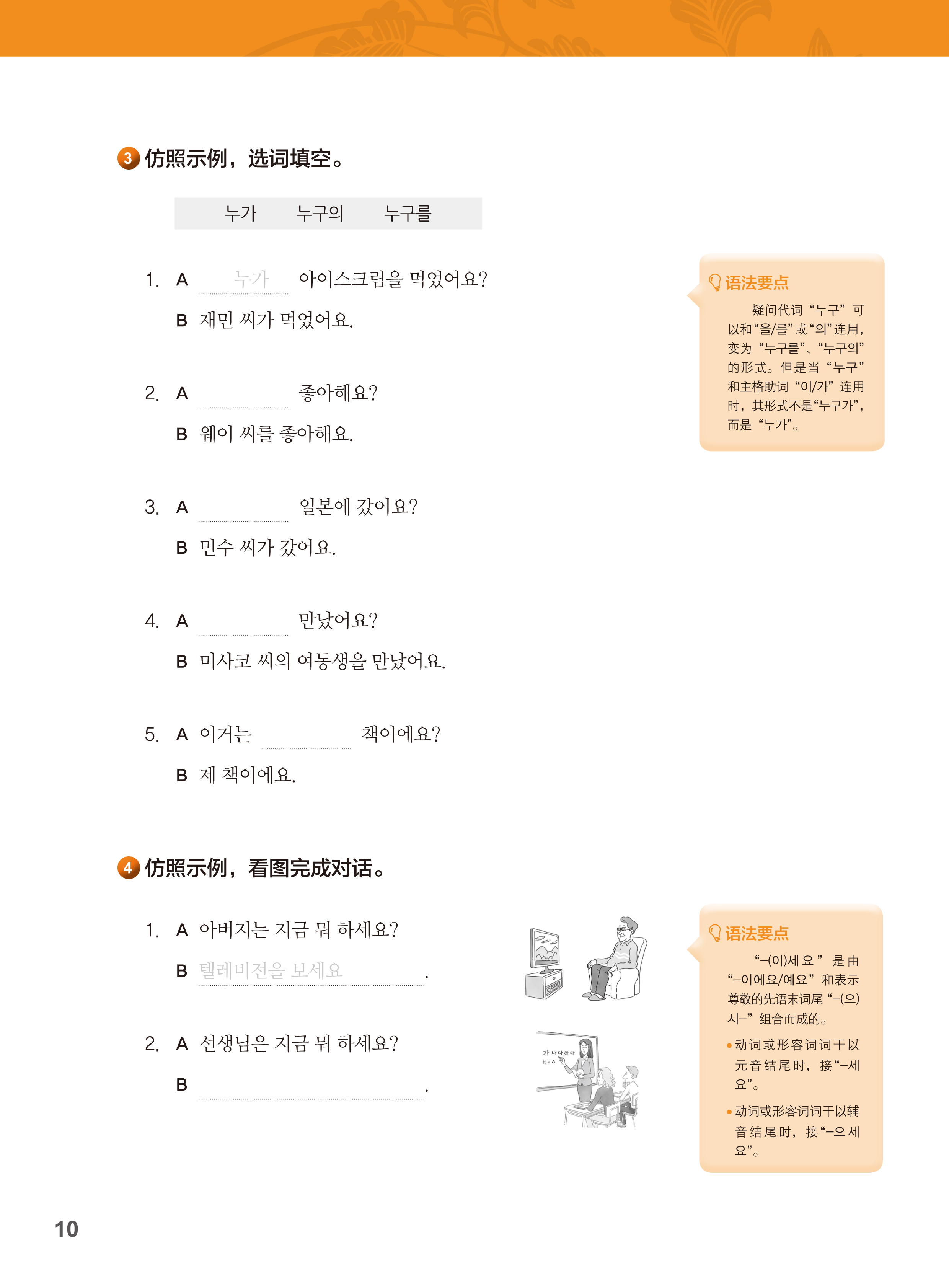 三,精心设计了深化、拓展练习。除了所要掌握的句型之外,练习册里还给出了与这些基本句型的结构及含义相似的其他句型,以深化、扩展学习内容。