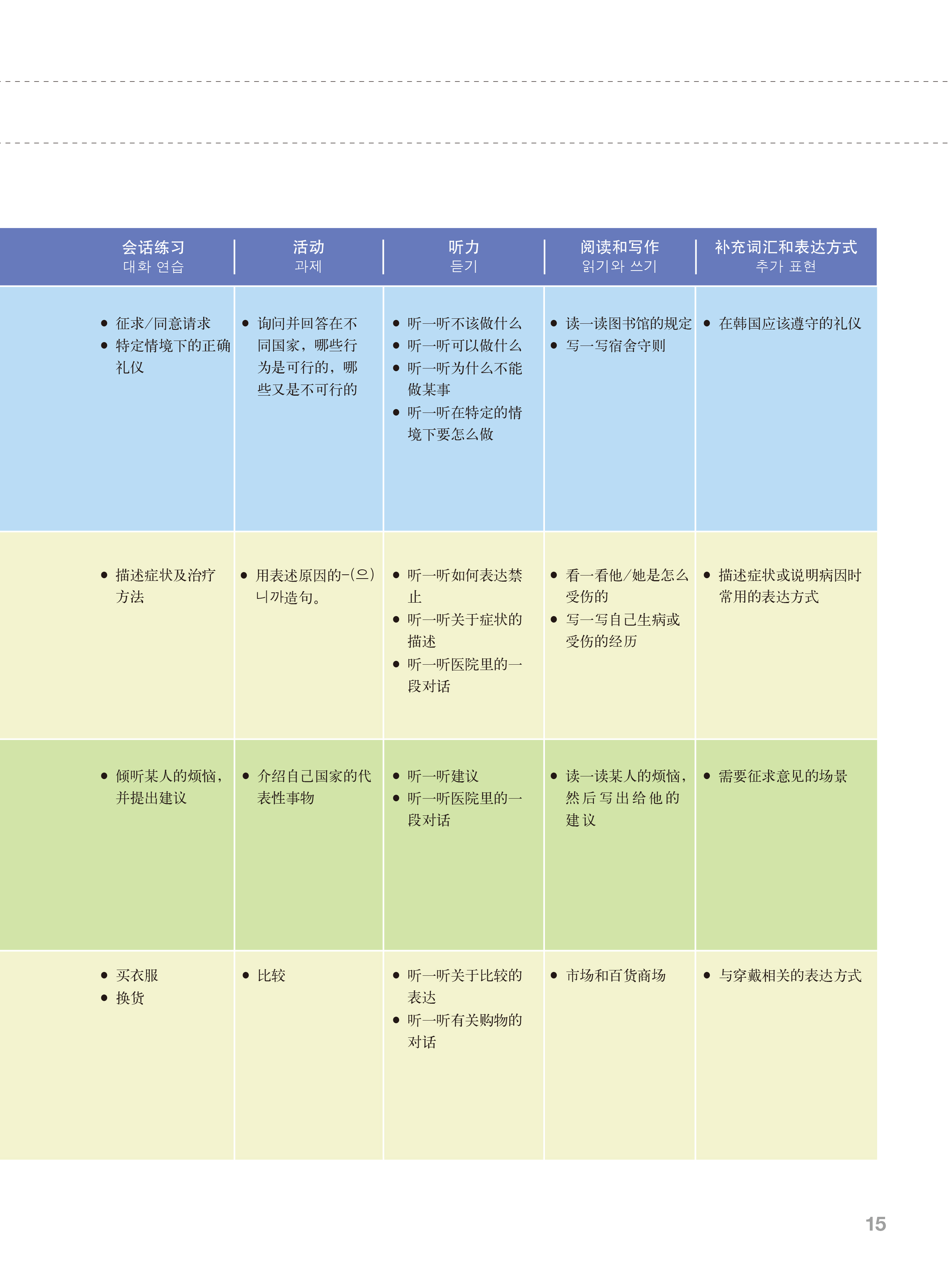 《首尔大学零起点速成韩国语2(MP3版 2018新)》综合考虑课程结构以及学习者的水平,构建每课的体系。体系结构包括贴合主题及情境的语法和表达方式、包含这些语法的核心会话、对话练习等,符合授课的一般过程,也有利于学习者理解和应用。