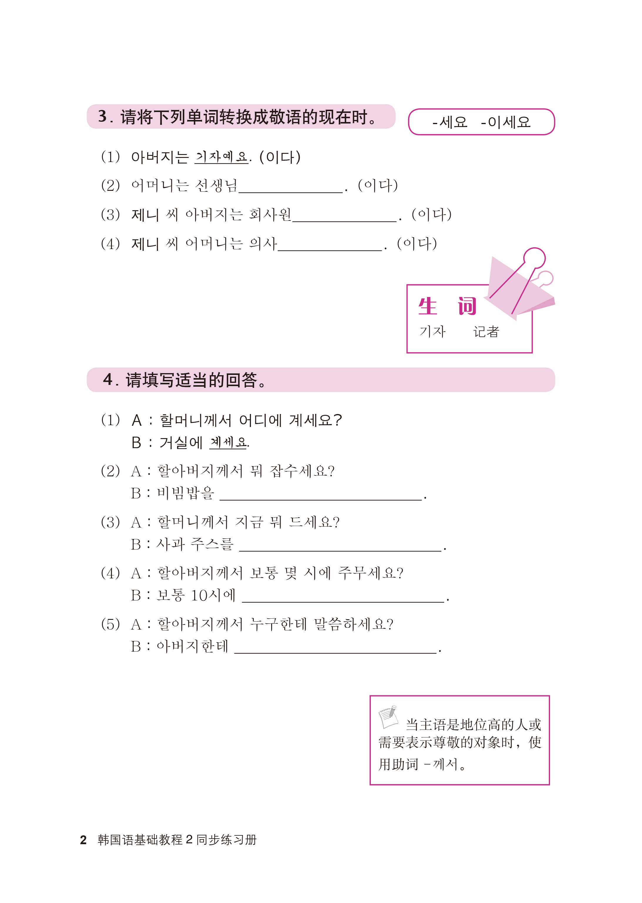 韩国语基础教程(2)(同步练习册)