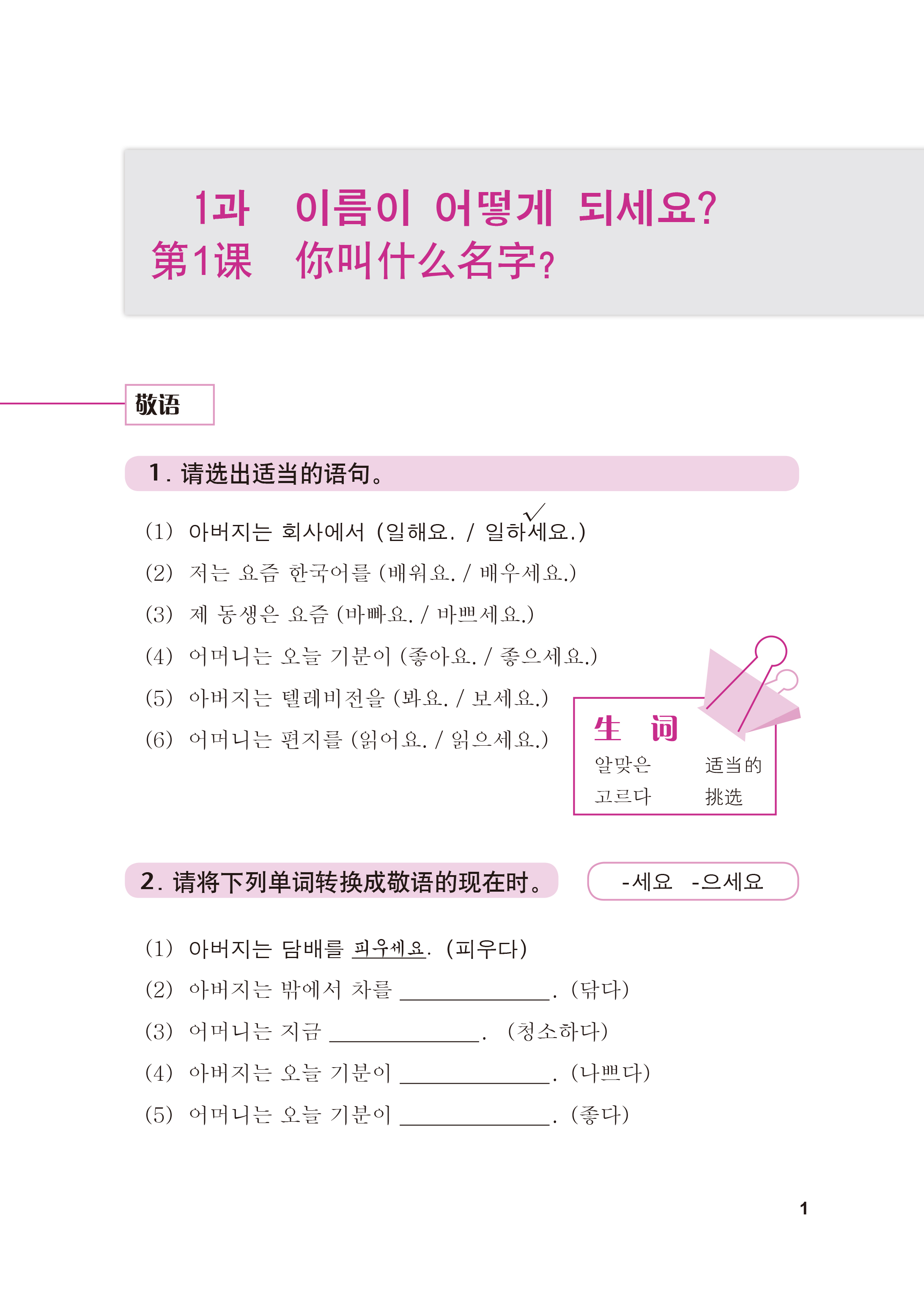 本练习册内容丰富,以初中级语法知识为主,包括主教材16课每一部分的单元练习,逐步提高学生应用韩国语初中级语法的能力。