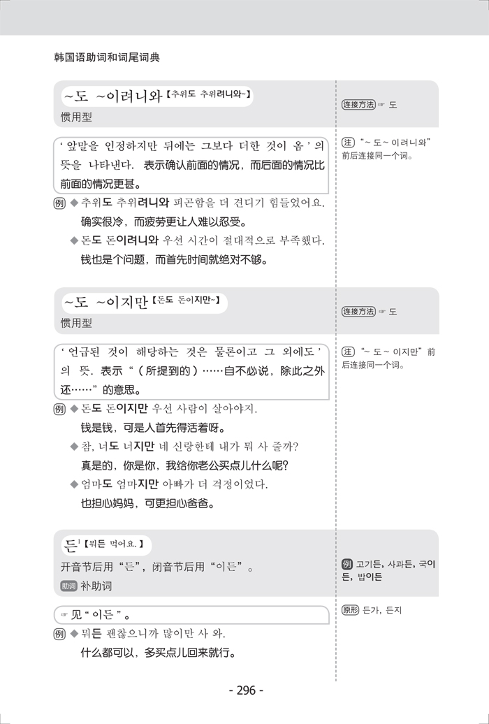 《韩国语助词和词尾词典》包括韩国语900多个助词、词尾和惯用型,中韩双语解析,通过例句讲解各个容易混淆的语法点,对比清晰,便于学习者掌握。同时,附录内容收录各类动词、形容词、词尾变形,便于学习者分类记忆。