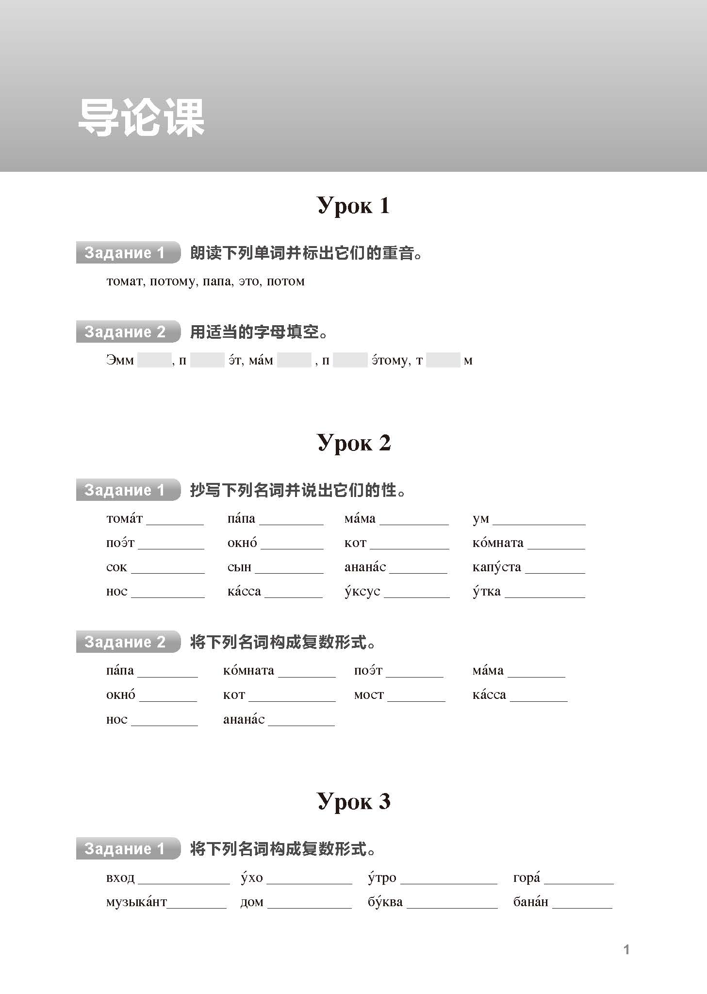 大学俄语东方(新版)(1)(语法练习册)