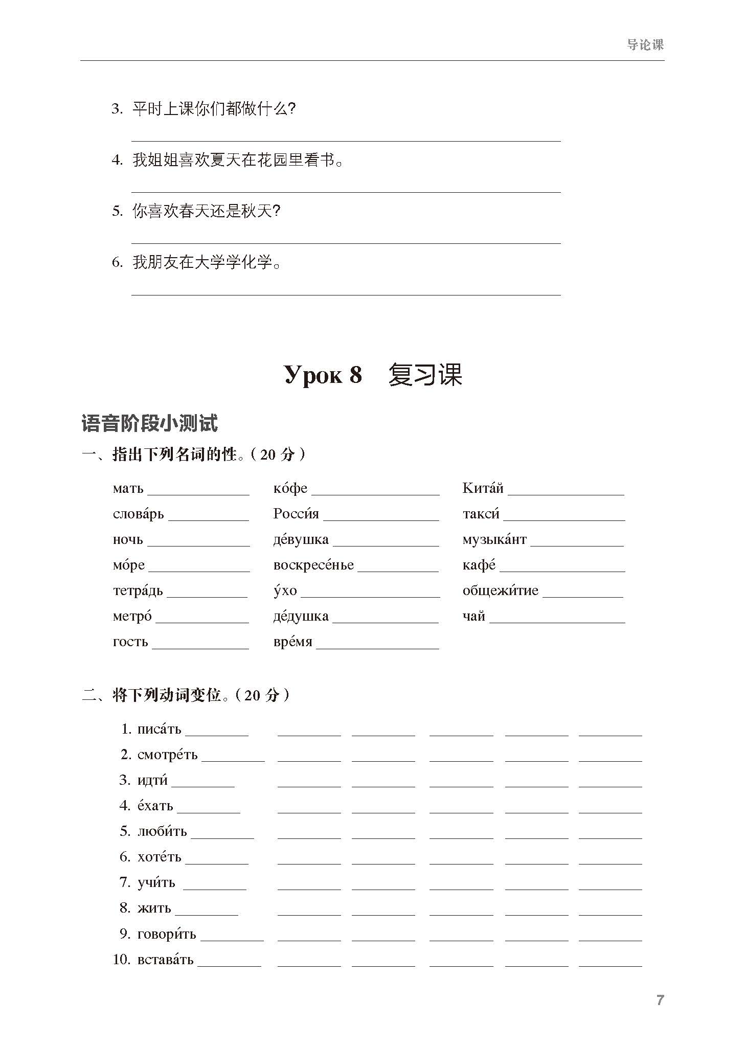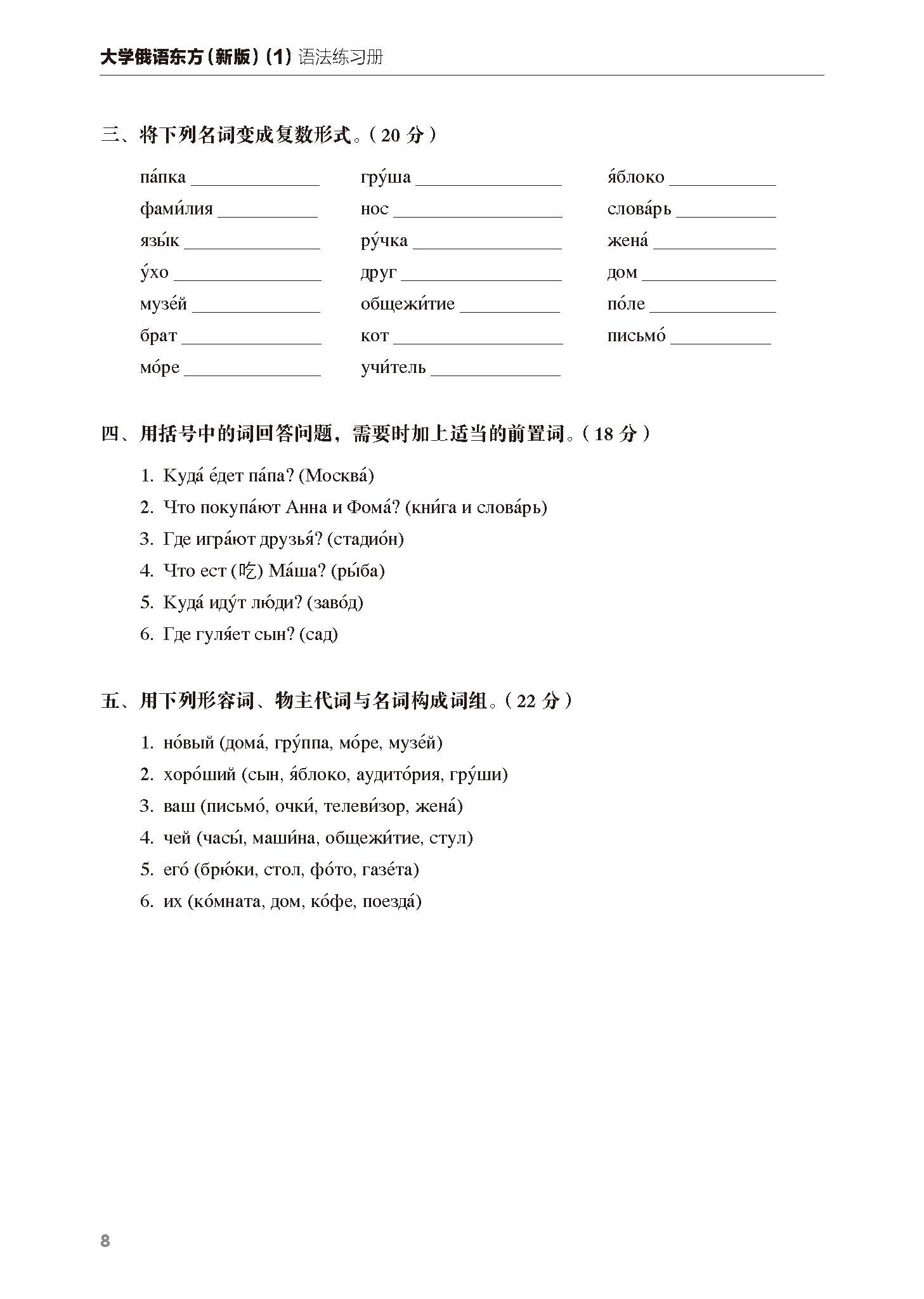大学俄语东方(新版)(1)(语法练习册)