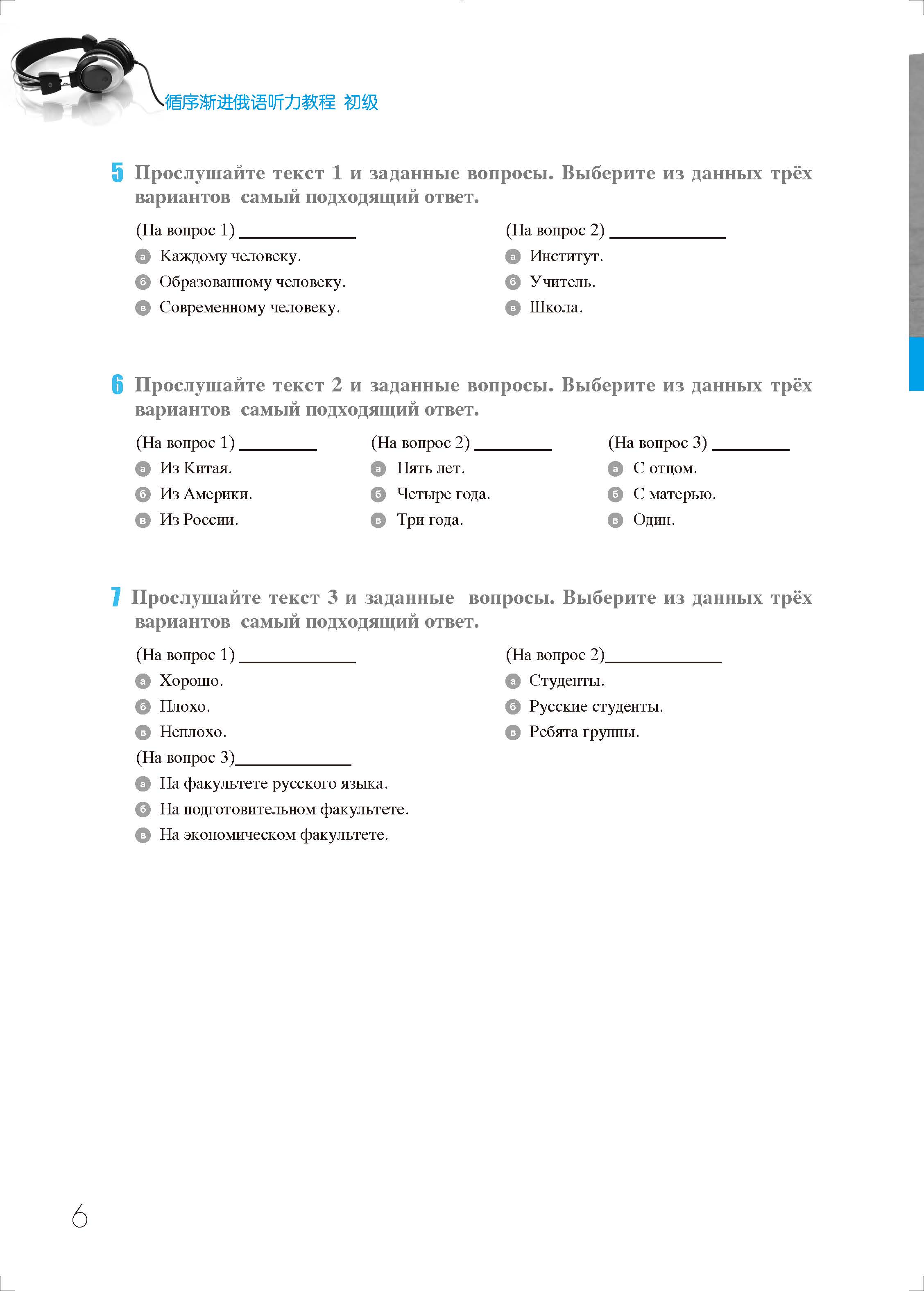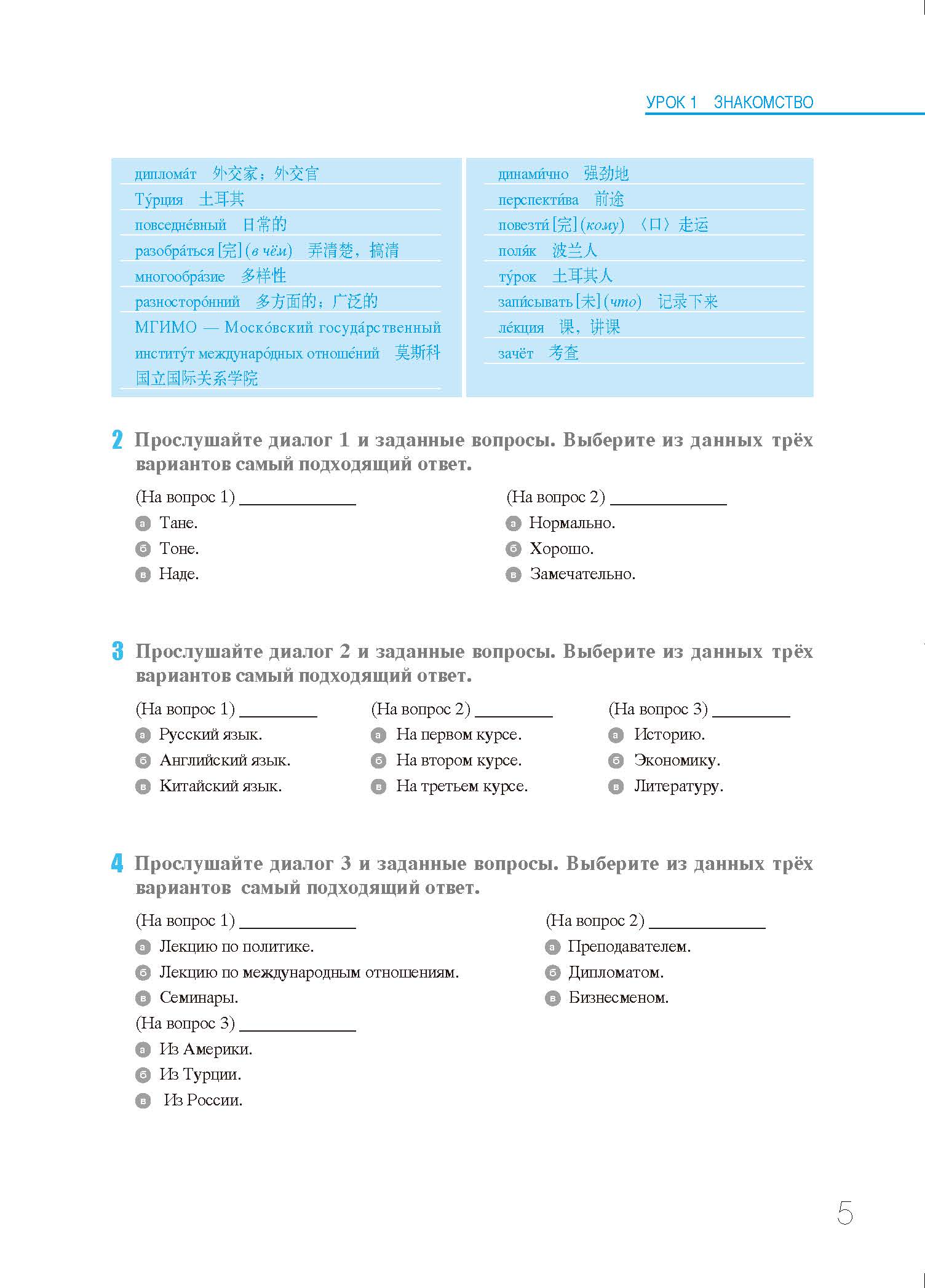《循序渐进俄语听力教程》共两册,每册20课,编排的主题涵盖日常生活和学习、境内外旅游、交通、住宿、订餐购物、休闲等40个场景。每课编排3个对话和3篇短文。初级教程中对话和课文的词汇量一般为50~100个词,中级教程为100~150个词。每5课为一个单元,每个单元后配有相应的测试题,全书后配有总测试题。本教材所设置的练习题形式多样,其中,选择性练习可帮助学生培养捕捉主要信息的能力;回答问题和填空等练习可帮助训练学生的语言基本功。