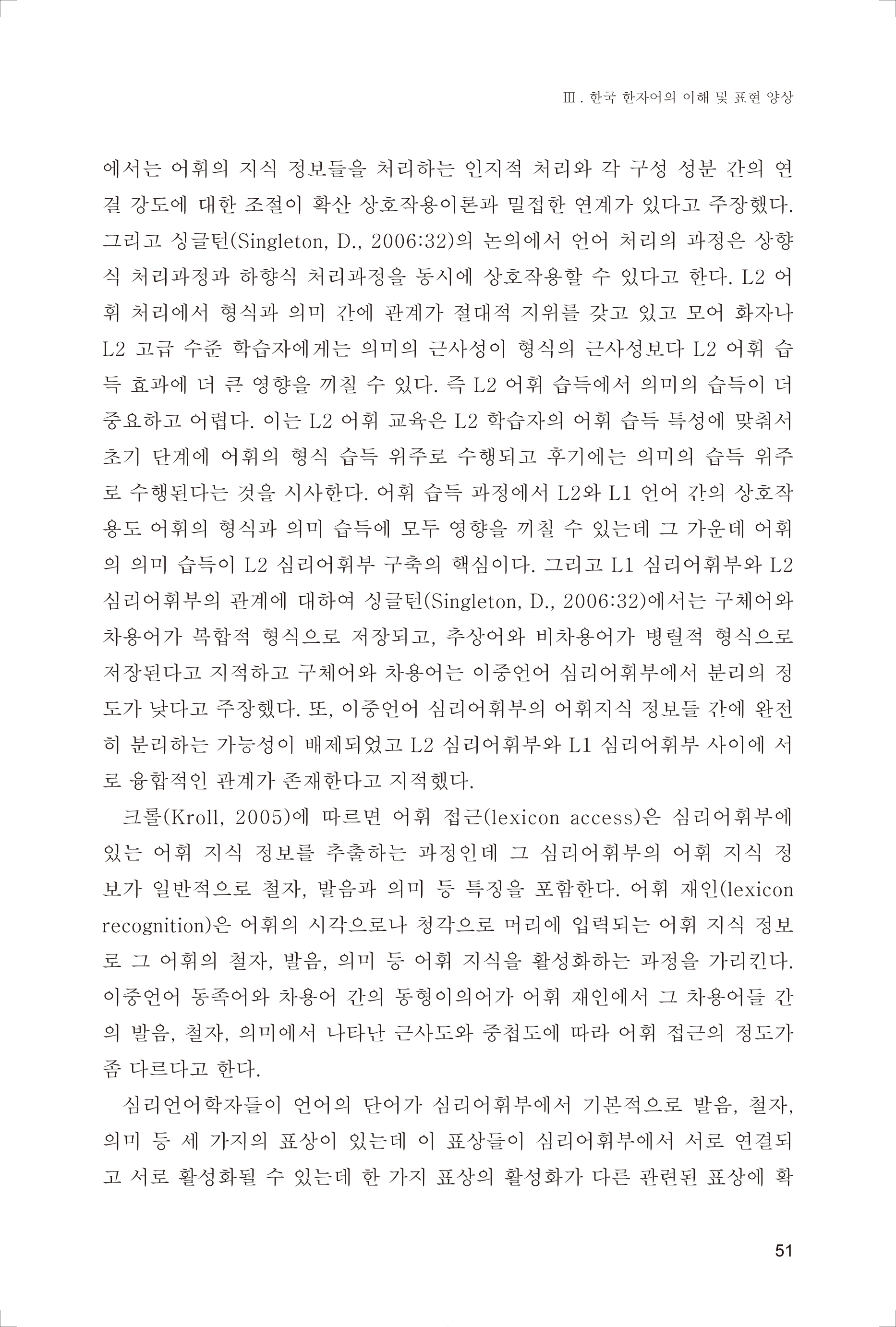 《朝鲜语汉字词习得与教学研究》《朝鲜语汉字词习得与研究》在研究内容(中国韩国语学习者汉字词习得影响因素与有效教学方案)、研究理论(二语词汇能力的四个维度)、研究方法(实时测试收集数据、定量和定性分析)和研究工具(统计分析软件SPSS)方面推陈出新。与前人有关研究相比,该实证性研究实现了研究方法上的创新和研究手段上的突破,结论立体全面、客观详实,应用价值较高。