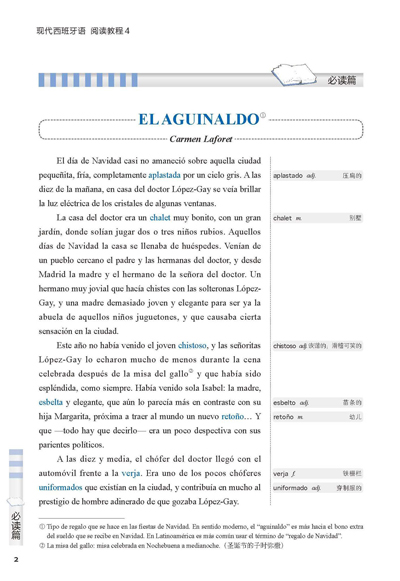 本册教程为文学专册。经过精挑细选,采用了27篇西班牙及拉丁美洲作家的作品,除一个中篇小说(节选)外,其余均为短篇小说,基本是名家名作。选篇内容健康向上、启迪智慧,知识性与趣味性兼具,可读性与思想性并重。语言纯正、精练,保证入选语篇的原汁原味。课文长短、难易,题材的选择,都体现了由浅入深、循序渐进的原则。篇章后设有帮助学生理解文章内容的练习及思考题,强调学生对所读文章的总体理解和把握,以提高其阅读能力与兴趣。“必读篇”和“选读篇”为学生提供了更多阅读空间和学习途径。希望西班牙语学习者翻开这本书时,能感受到阅读的愉悦,在学习的道路上更进一步!