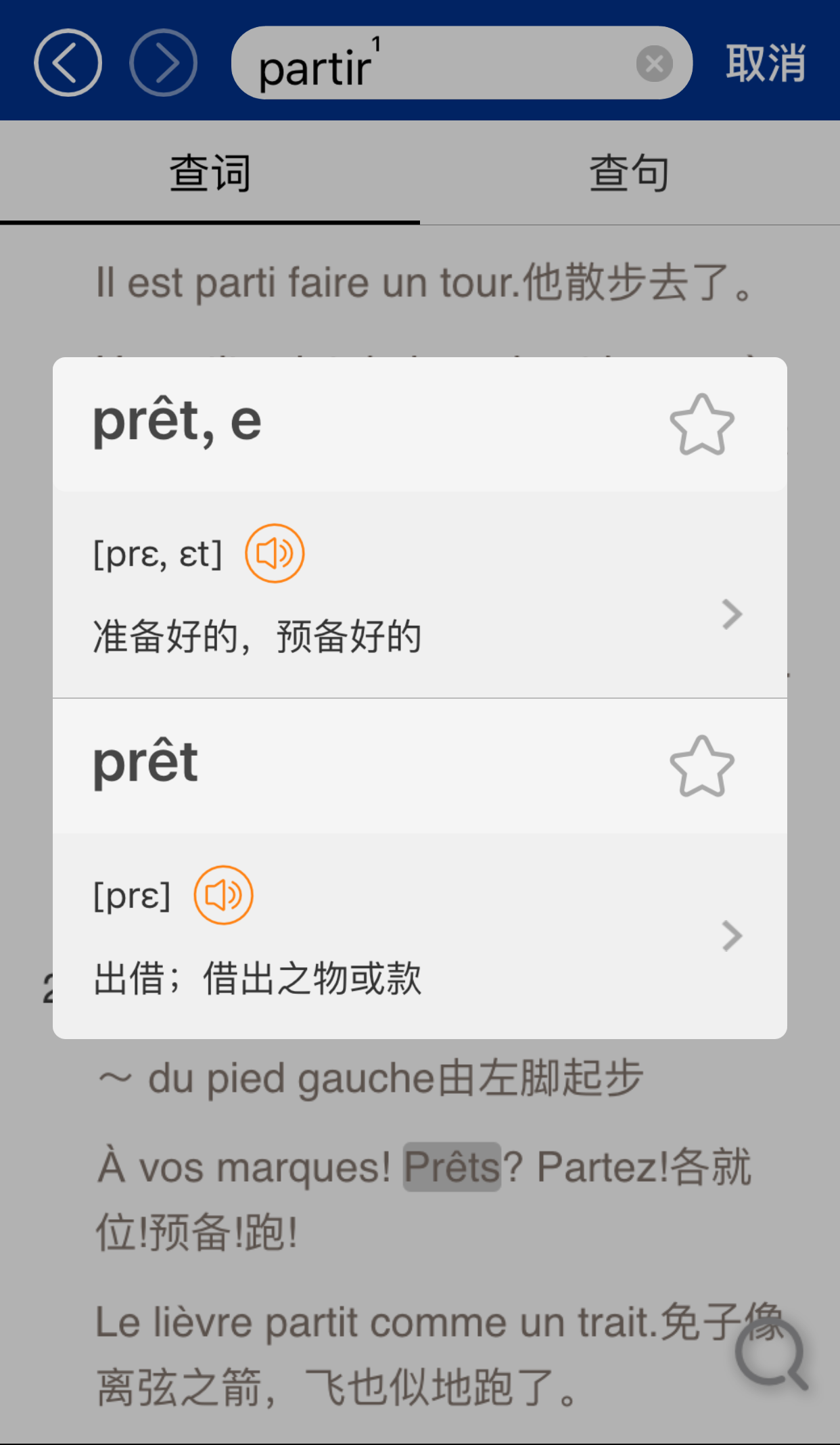 “法汉汉法大词典” APP包括《汉法大词典》和《新世纪法汉大词典》纸质图书的全部词条,可查法语、汉语词语30余万。主要有以下功能和特色: