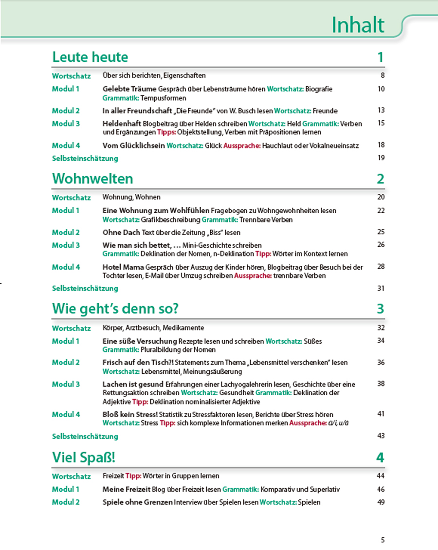 《走进德国(B1+)(练习手册)》是B1+阶段的配套练习手册,全书编写符合德语语言教学的规律,教材内容质量很高。《走进德国》(B1+、B2、C1)(Aspekte neu)系列教程是一套专门为德语非母语学习者编写的德语语言学习类教程,由德国柯莱特教育出版社(Klett)出版发行。本套教程适用于有一定德语学习基础并达到"欧洲语言共同参考标准"B1水平的学习者德语中高级课堂使用。德语学习者完成本套教程可达到"欧洲语言共同参考标准"C1的水平。本套教程分为三个级别(B1+、B2、C1),每级涵盖学生用书(Lehrbuch)、练习手册(Arbeitsbuch)、教师手册(Lehrerhandbuch)及相应视听教学资料。本套教程还配有B1+至C1级别的语法手册一本。