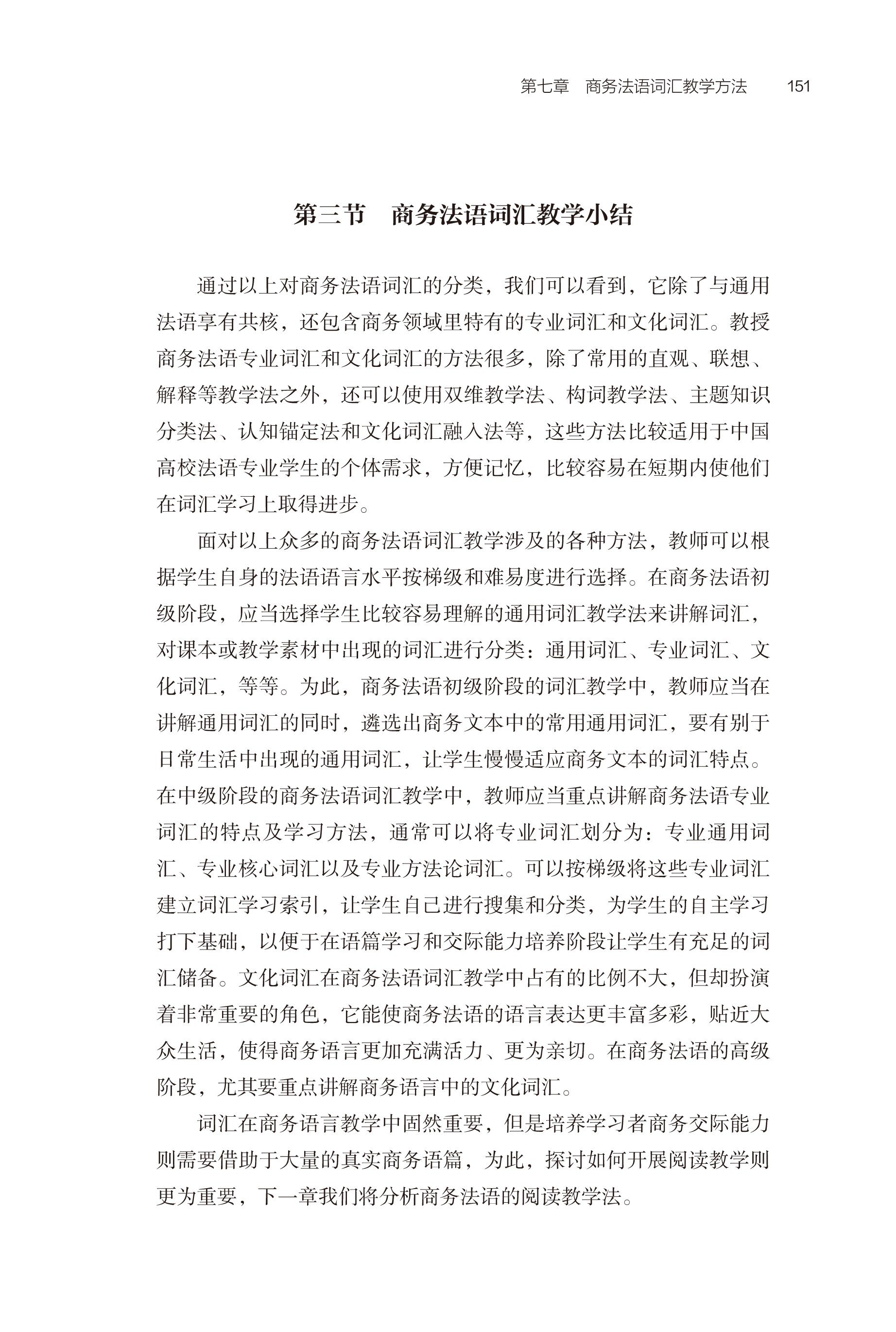 其次,从外语教学涉及的主客体要素(学习者、教师和教材)对商务法语教学实践进行了较为全面的分析,对商务法语的语言特点及商务法语教学课程的设计原则进行了有益的探讨;