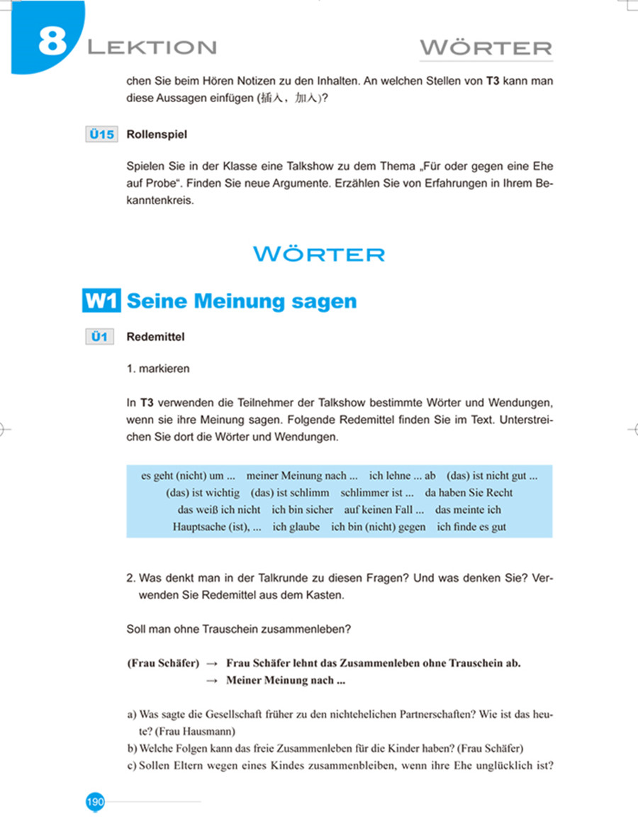 《当代大学德语2学生用书》是为高等学校德语专业本科基础学段编写的德语语言综合训练型教材,教材融合了我国德语教学数十年经验与国内外和先进教学理理论,将语音、语法、词汇等语言知识和听、说、读、写四项基本能力的训练有机地结合在一起,充分考虑德语国家国情、文化特点以及社会经济和政治的现状,着重培养学生的语言应用和跨文化交际能力,课文取材新颖、题材丰富、图文并茂,富有时代气息。