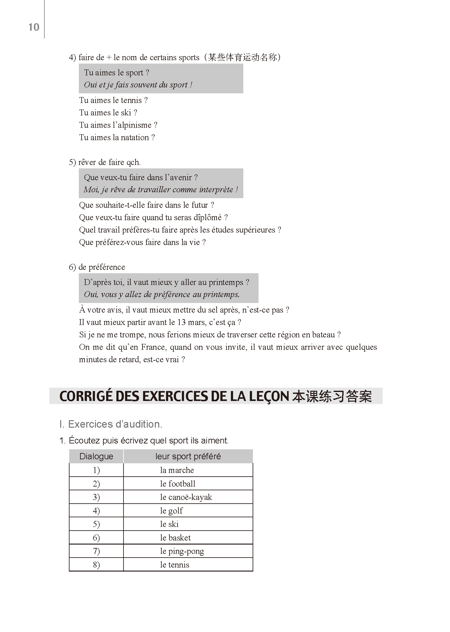 因《法语(修订本)2》提供大量的课后练习,教师不可能在课上处理完所有的习题,所以学生可以利用《法语(修订本)2教学辅导参考书》在课下消化;另外,学生也可以对照参考译文板块,提高自己的翻译水平。使用《法语(修订本)2》自学法语的读者可以利用本课测验及答案自评自测,巩固每课所学。