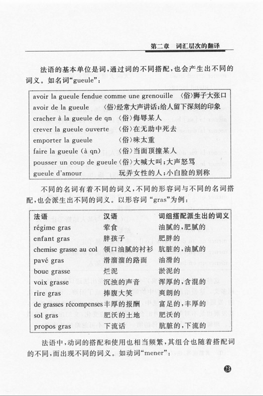《普通高等教育“十一五”规划教材:法汉翻译理论与实践》的特点为2+3,即两个范畴:理论与技巧;三个层次:词汇层次,句子层次,语篇层次。通过理论与实践的结合,在讲解翻译语言要求的同时,还贯穿着修辞与审美。