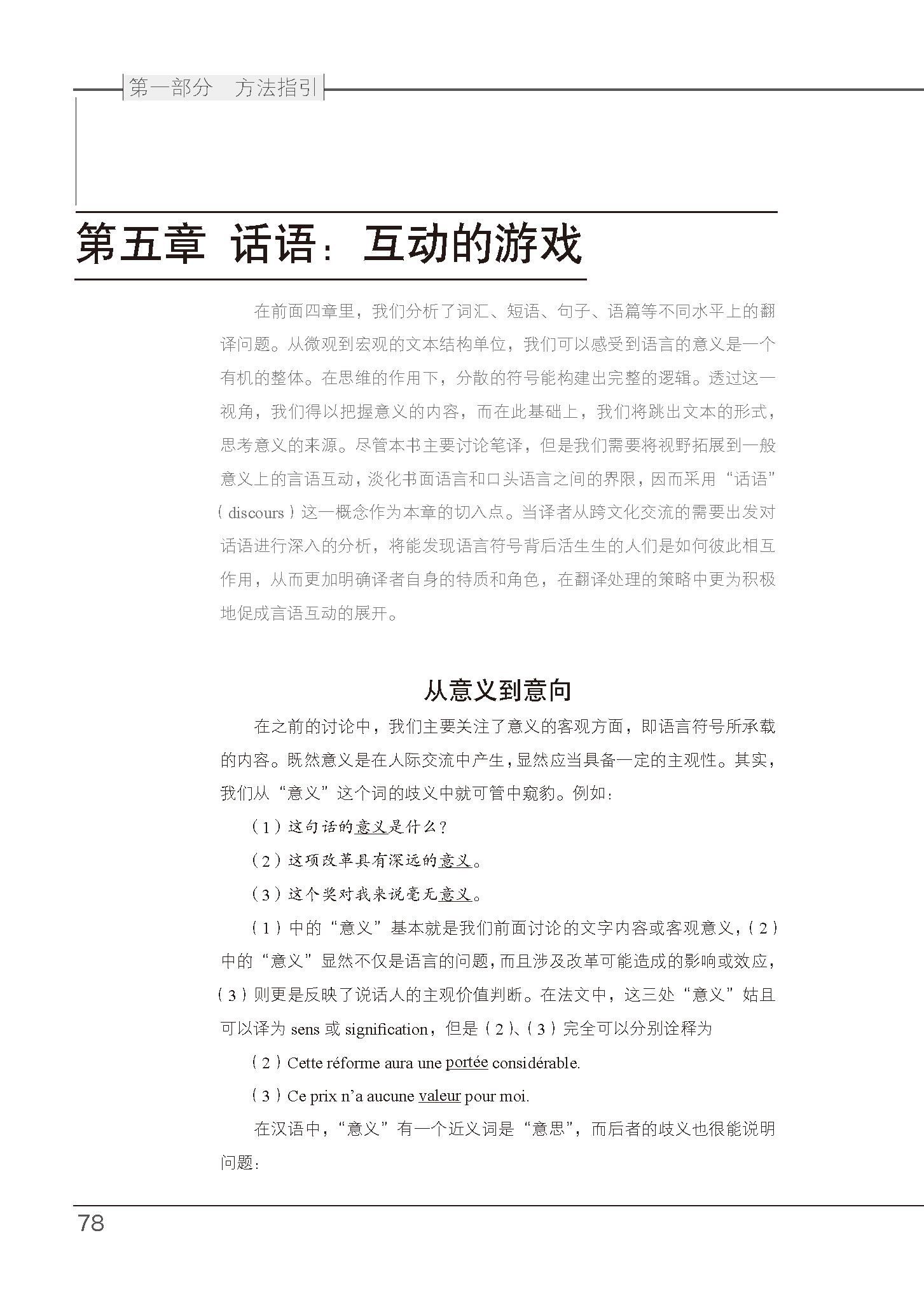《汉法翻译基础教程》主要介绍汉法翻译技能的训练方法,主要面对法语专业本科高年级学生以及法语和翻译专业研究生,也可供关注翻译理论与实践的教师参考。全书的脉络和内容直接取材于师生之间的真实互动,收录教师在学生课堂练习的基础上就翻译中的理论原则和解决方案进行的细致的研讨,旨在为学生提供一些实用的翻译指导。