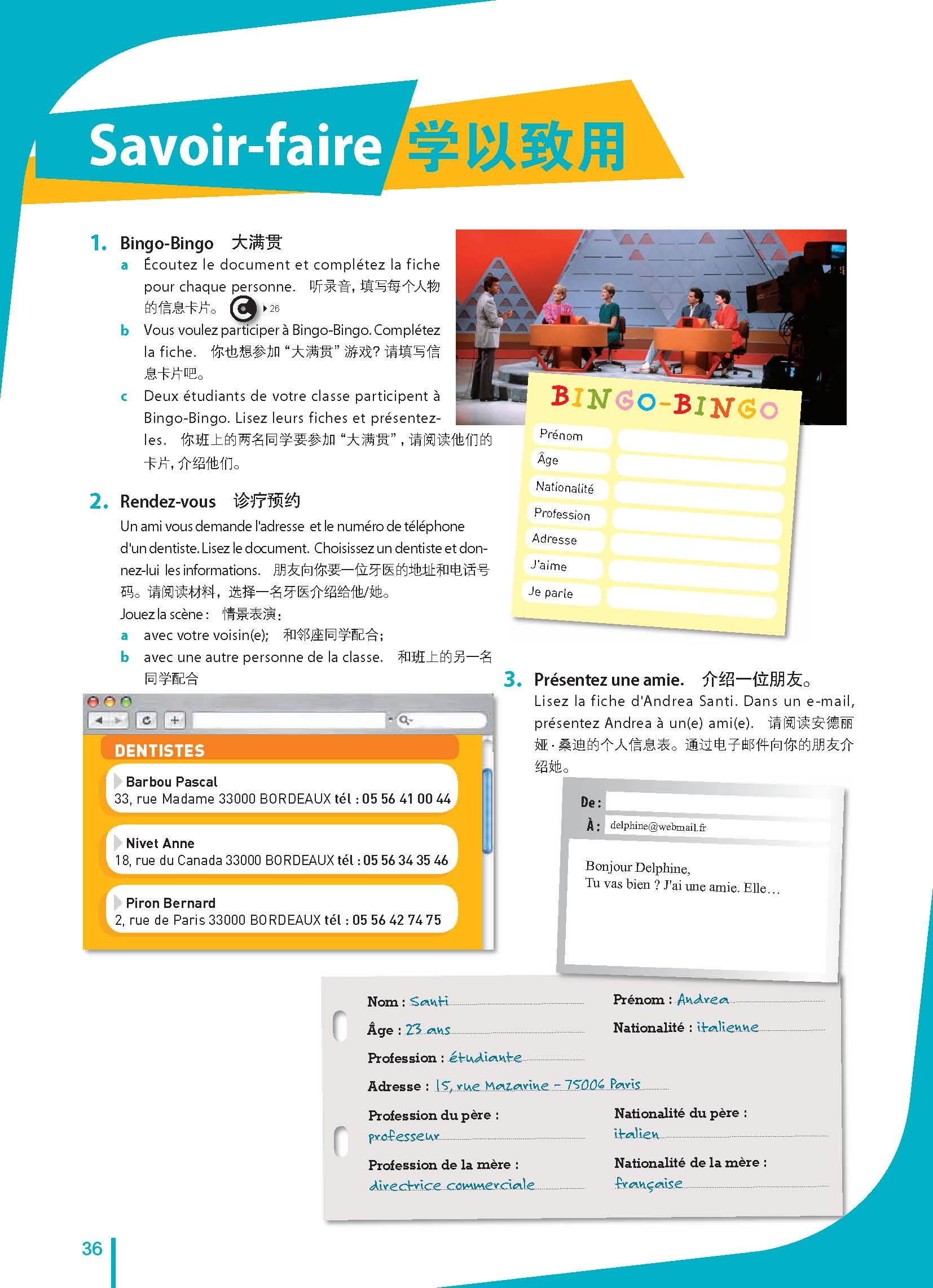 《你好!法语》编写严谨,以“欧洲语言共同参考框架”的学习规范为指导,一至三册分别对应A1、A2、B1三个级别。