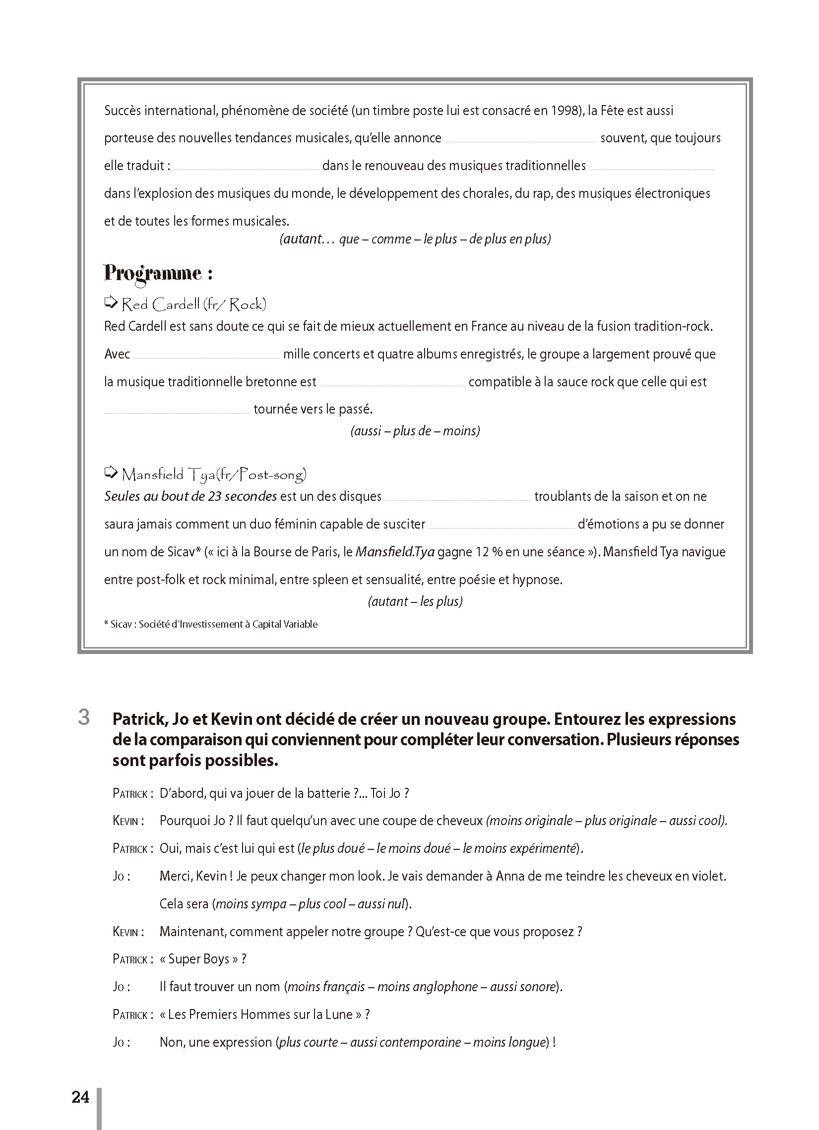 《你好!法语3练习册》为B1级学生用书配套的练习册,对应学生用书6个单元共24课的内容,每课均按照语法、词汇、理解等版块设计补充练习,题型设计活泼多样,材料多为真实语料,实用性、学习性并重。书后给出参考答案,方便读者进行自查。