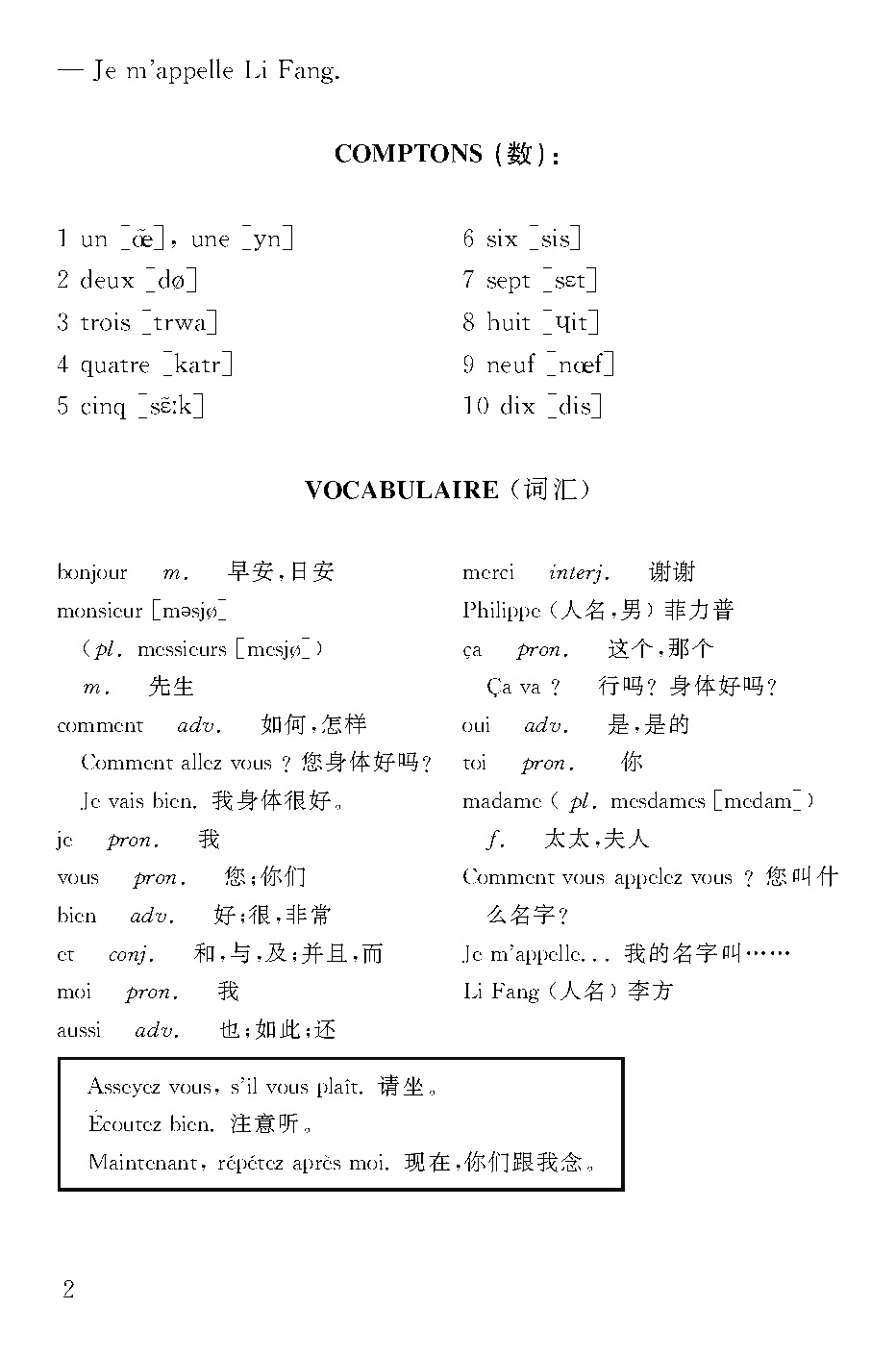 根据教学大纲规定“法语(二外)教学的目的主要是培养学生具有初步的听说读写译能力,使学生初步掌握法语的基本知识和基本技能,并为进一步学习法语打下语言基础”。为此,《大学法语简明教程》中领会式掌握单词限定为1500个,语法经过精选,做到简明、循序渐进。 语音阶段的特点是语音与语调并重,通过学话来学习语音、语调,通过拼读练习和朗读练习来掌握正确发音,培养学生的认读和拼写能力。语音、语调的训练应该贯串全学年的教学过程中。
