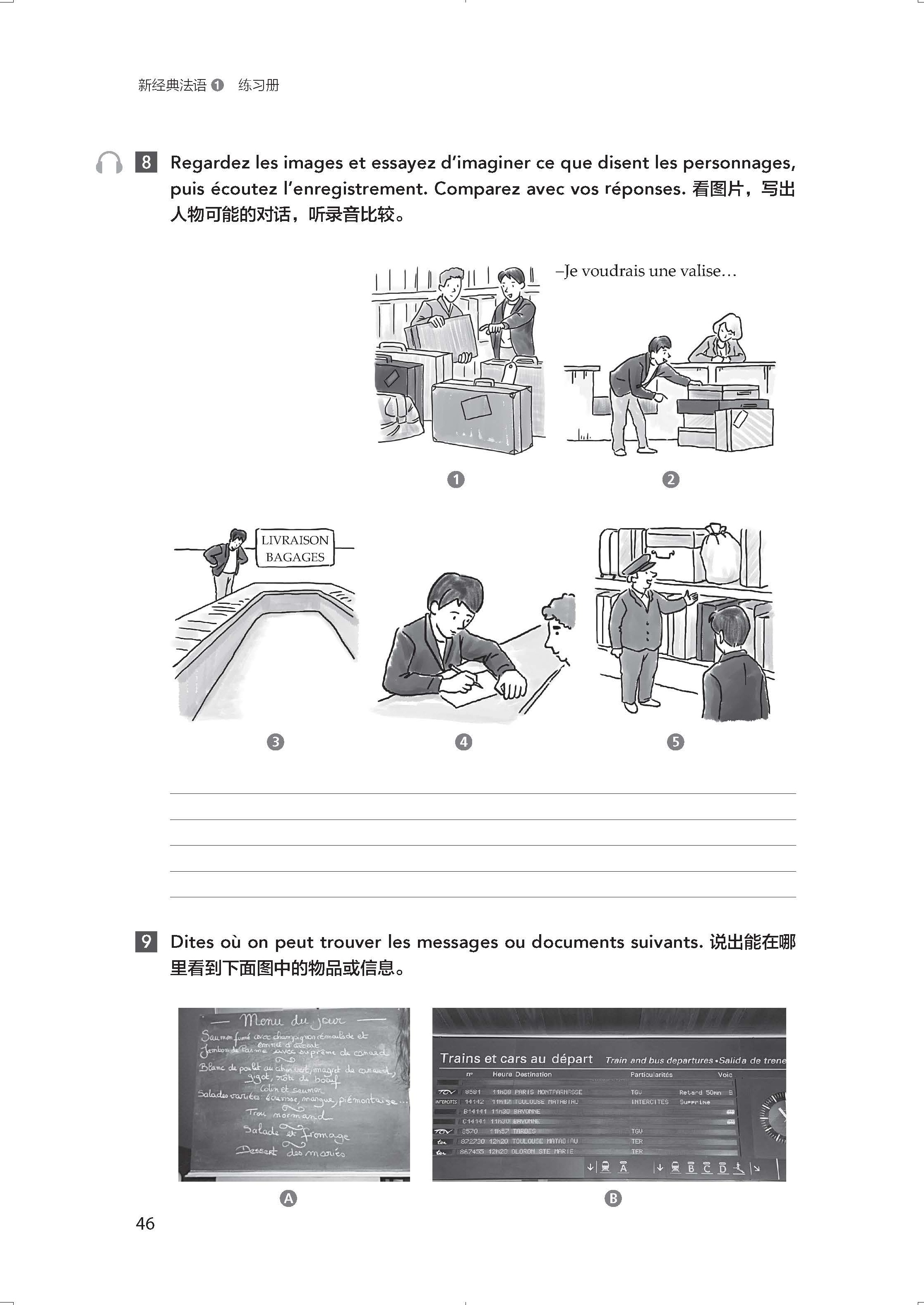 《新经典法语1练习册》是配合《新经典法语1学生用书》使用的同步练习手册。内容与学生用书同步,根据学生用书的安排,共分为4个单元,14课。每课一练,巩固课上所学的语法点和语言点。每单元结束后都有单元训练,检测本单元所学。练习题型新颖,听说读写译能力训练并重,通过丰富多样的练习帮助学生打好法语基础。免费下载外研社随身学APP,可用手机播放音频。