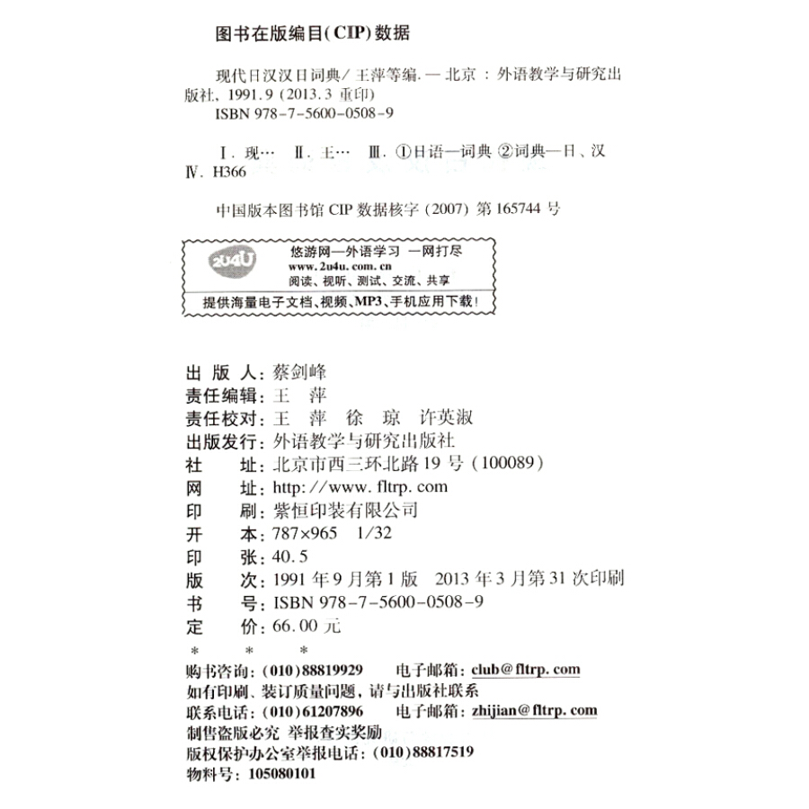 共收词目四万余条,附派生词。特别收入科技、社科新词和外来语。丰富的常用句型和成语、谚语。单词后附有重音读法;动词、助动词、形容词、形容动词活用表;世界部分国家、地区、首都对照表;假名罗马字拼音表;主要度量衡名称对照表;日语汉字音读、训读读法;中日历史年代对照表;中国各省、自治区、直辖市名称表,选词新、释义准、例证多、编排精,方便、实用。
