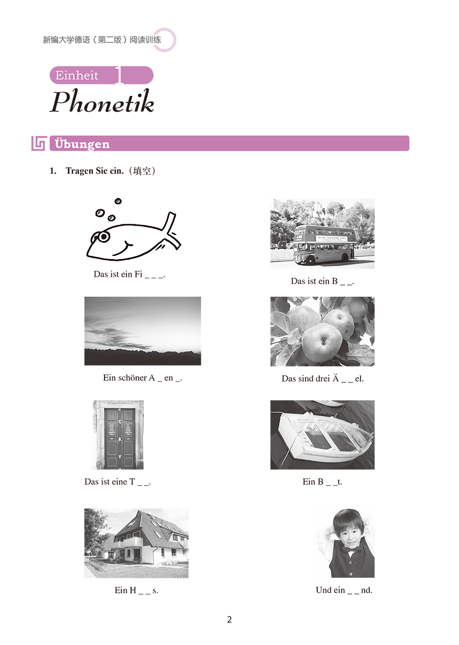 《新编大学德语词汇练习》是《新编大学德语》的配套用书,将本系列四册主教材中的词汇按照每册十个单元的课文顺序编写,每册除10个单元的练习外,还有两套自测题。各单元重点练习的词汇均为《大学德语课程教学要求》中的四级词汇。练习的范围包括:单元主题词汇的记忆、复习,词汇的用法,同义词、名词、动词、形容词的固定搭配,构词、词汇扩展等。在练习形式上采用了看图选择、造句、改写句型、翻译、字谜、填空、趣味测试等多种形式。教师可根据学时情况,作为课堂或课后书面作业处理。每册书后附参考答案,以便学生课后自学和自我测试。