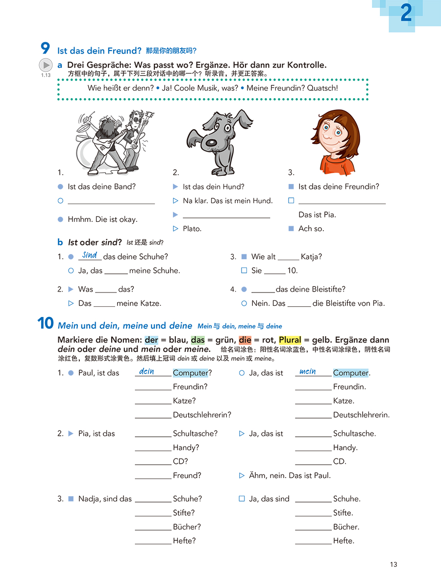 2.教程难度适中、趣味性强,收录的话题均为德语初级阶段重点、热点话题,涉及青少年学习生活的各个方面,有针对性地训练学生对不同话题的理解及表达;课程内容丰富、角度多样,问卷调查、游戏以及课后活动等设计均有出现;此外,教程每一单元结束后都含有单元内容总结,每四个单元结束后附有全面的语法概览和文化讲解,有助于学生拓展视野,提升跨文化交流能力。
