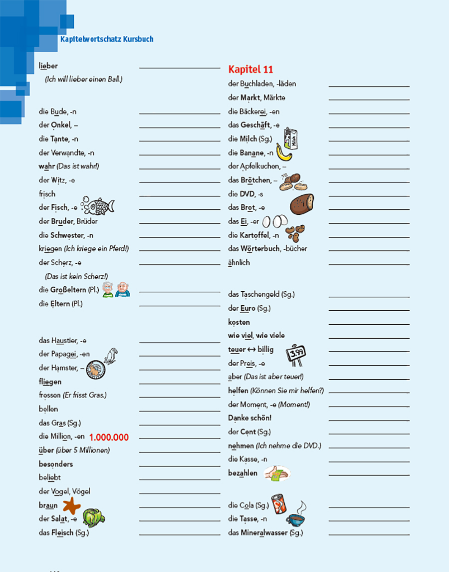 3.本套教程最突出的特点为教程中含有大量丰富的习题以及针对DSD I、歌德学院A1等考试的备考内容。教程中不仅包含及时巩固课上所学内容的《练习手册》,还配有重点训练语法、词汇的《强化训练》以及听、说、读、写分模块考核的《同步测试》。此外,学生用书每四个单元后的总结还包含针对考试的备考方法讲解与习题,在《同步测试》中亦可见到相应考试题型。