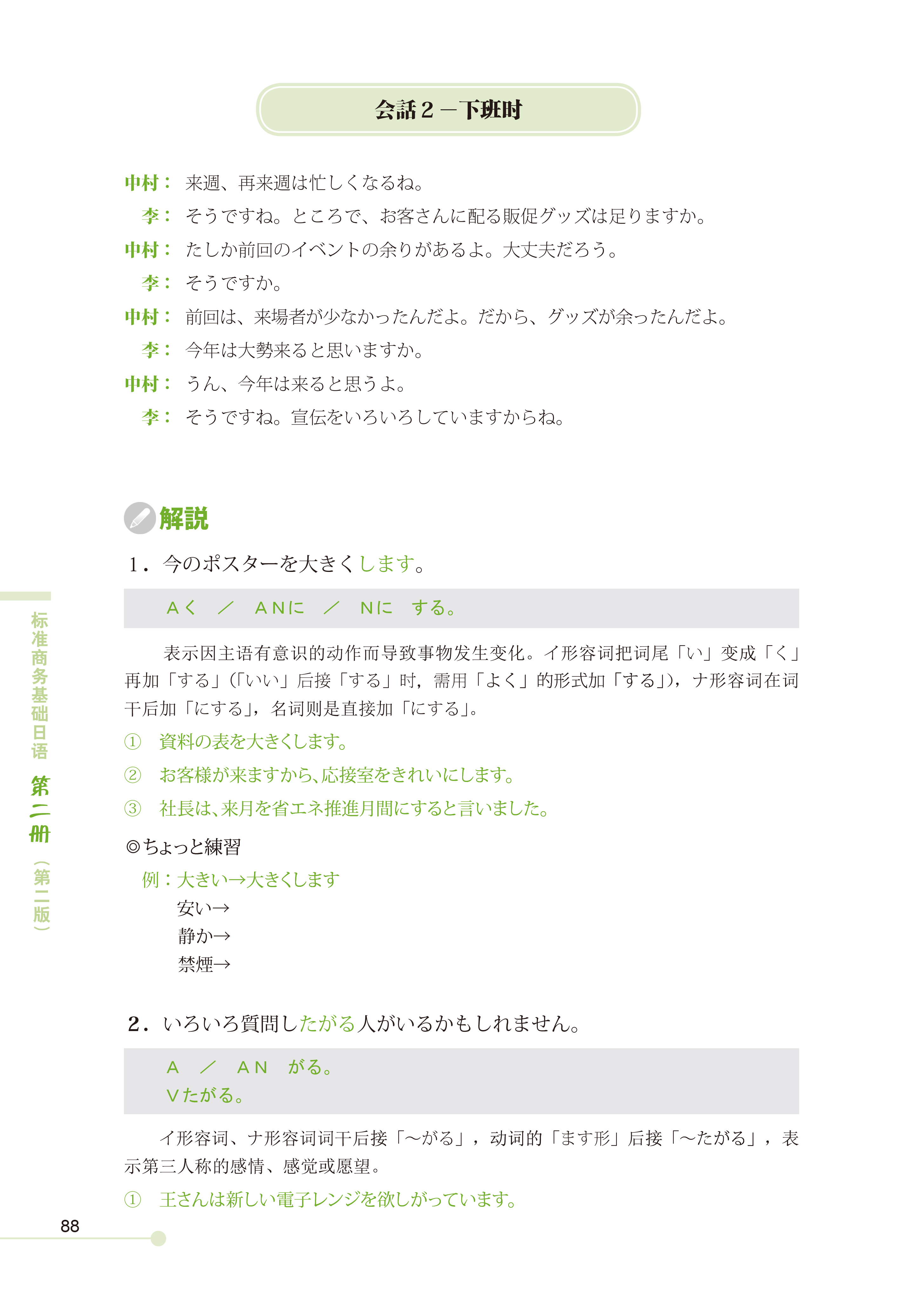 《标准商务基础日语第二册(第二版)》是中日两国专家精心编写的实用型商务日语教材。经全国职业教育教材审定委员会审定,十二五职业教育国家规划教材。