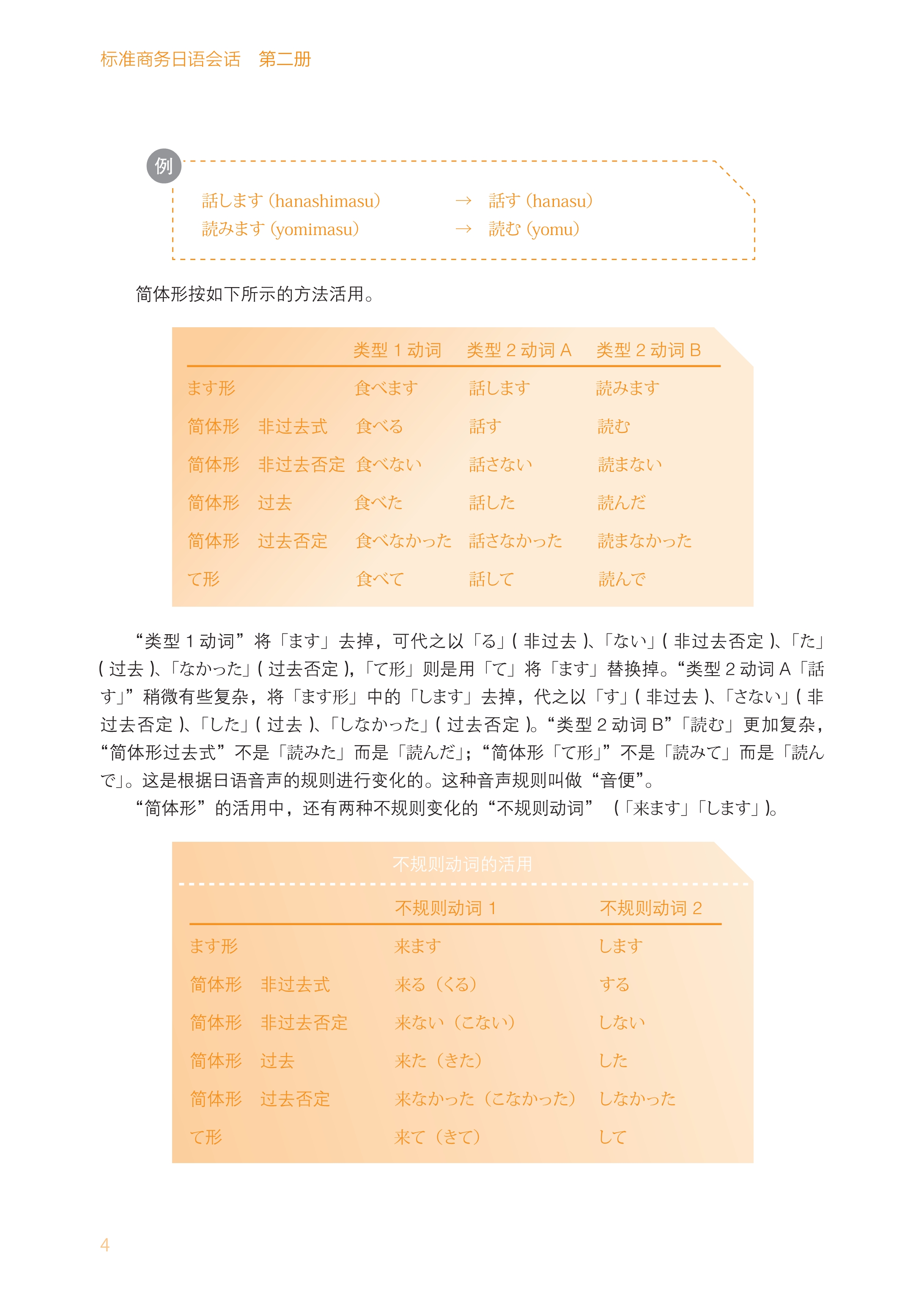 《标准商务日语会话第二册(配光盘)》是针对商务日语专业的学生编写的一套从内容和学习方法上都是全新的会话教材。从内容上看,本教材与一般的教材不同,本书引入了与商务相关的专业词汇和企业内部经常使用的商务惯用表达方式;从学习方法上看,本书打破了以往教材通过机械性的反复练习来死记硬背知识的方法,而是学习者通过已知的知识,根据现有的“假设”在不断的“错误的尝试”中学习语言的方法。