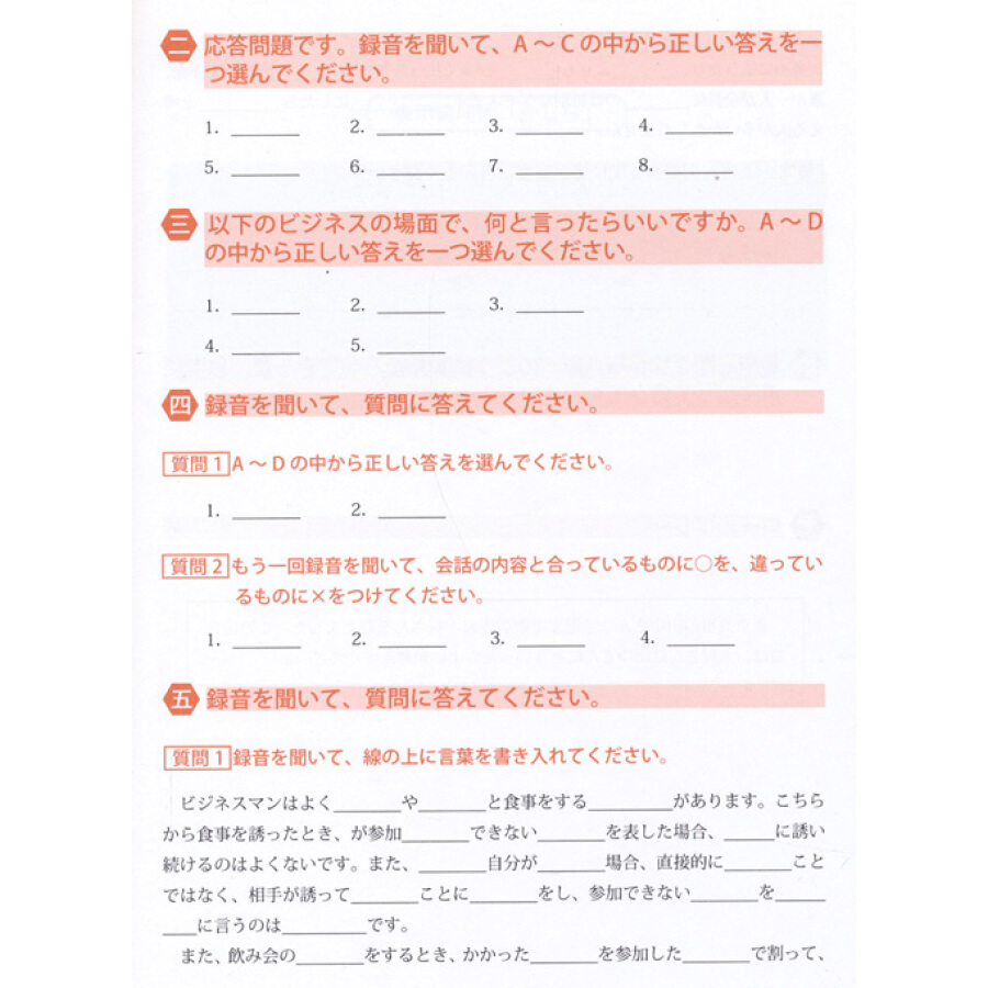 《标准商务日语听力第二册》内含教师用书与解答部分两册,方便老师与学生课堂教学,检验真实学习进度。本书的课程设计极其丰富,学习形式多样,每课均设有新句型接续练习、应答练习、会话选择练习、判断对错练习、听力填空练习、跟读练习、场景会话练习等环节,以及技巧知识的介绍等。激发学生的参与积极性。并与JTEST、标准商务日语考试等接轨,方便学生进行自我检测,增强应试能力。