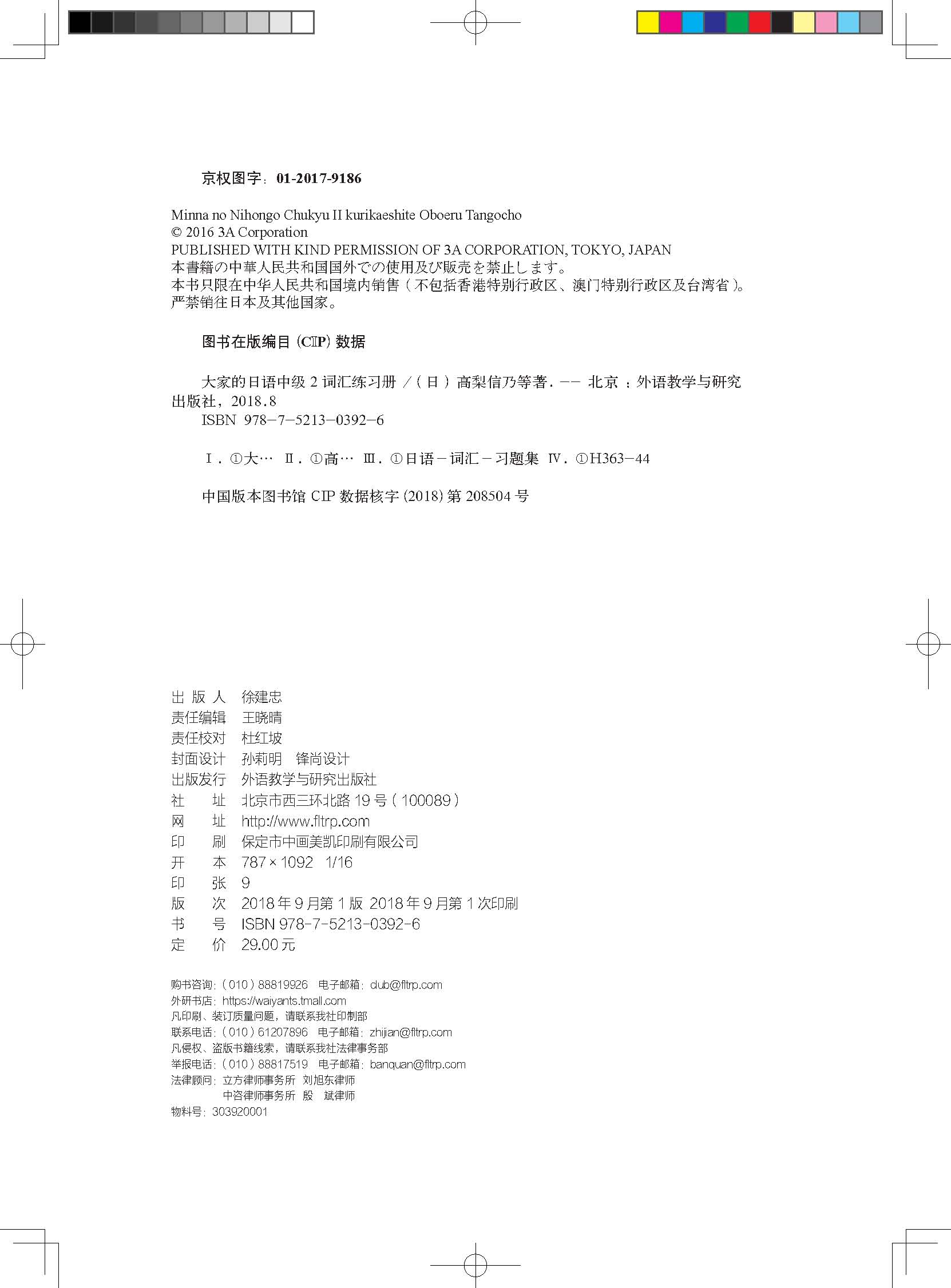4. 《大家的日语中级2词汇练习册》虽然是《大家的日语中级2》配套的词汇练习册。但即使未使用主教材《大家的日语 中级》的读者也可使用本书确认、整理、巩固自己的日语词汇。
