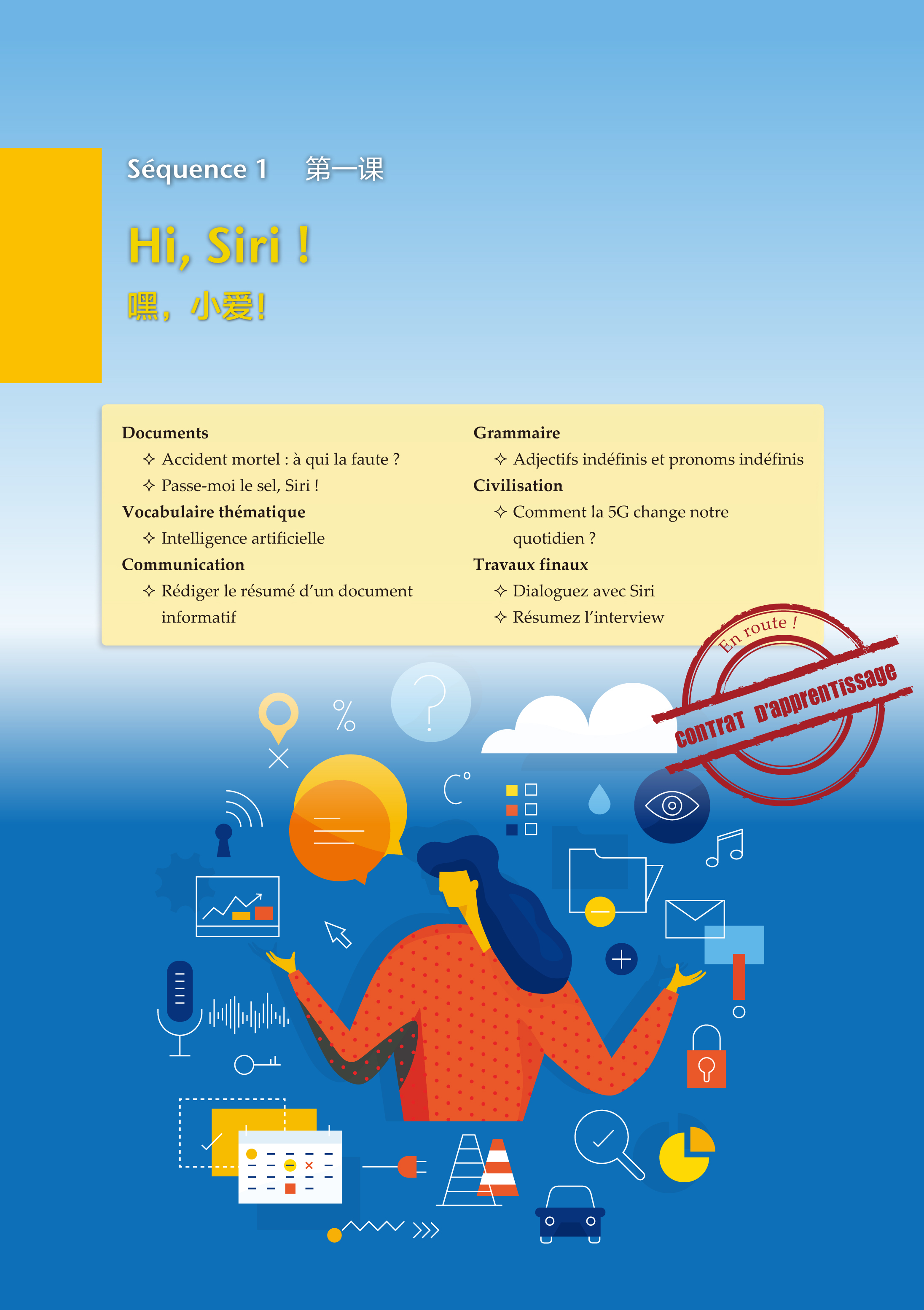 B2模拟题,分别从中国和法国现行的法语能力评估测试来检测学生的法语水平。第四册沿袭前三册的板块编排,每课由学习文本、基本词汇与主题词汇、交际、语法及练习、文化阅读以及通关任务几大板块构成。编者团队在外版教材(Studio